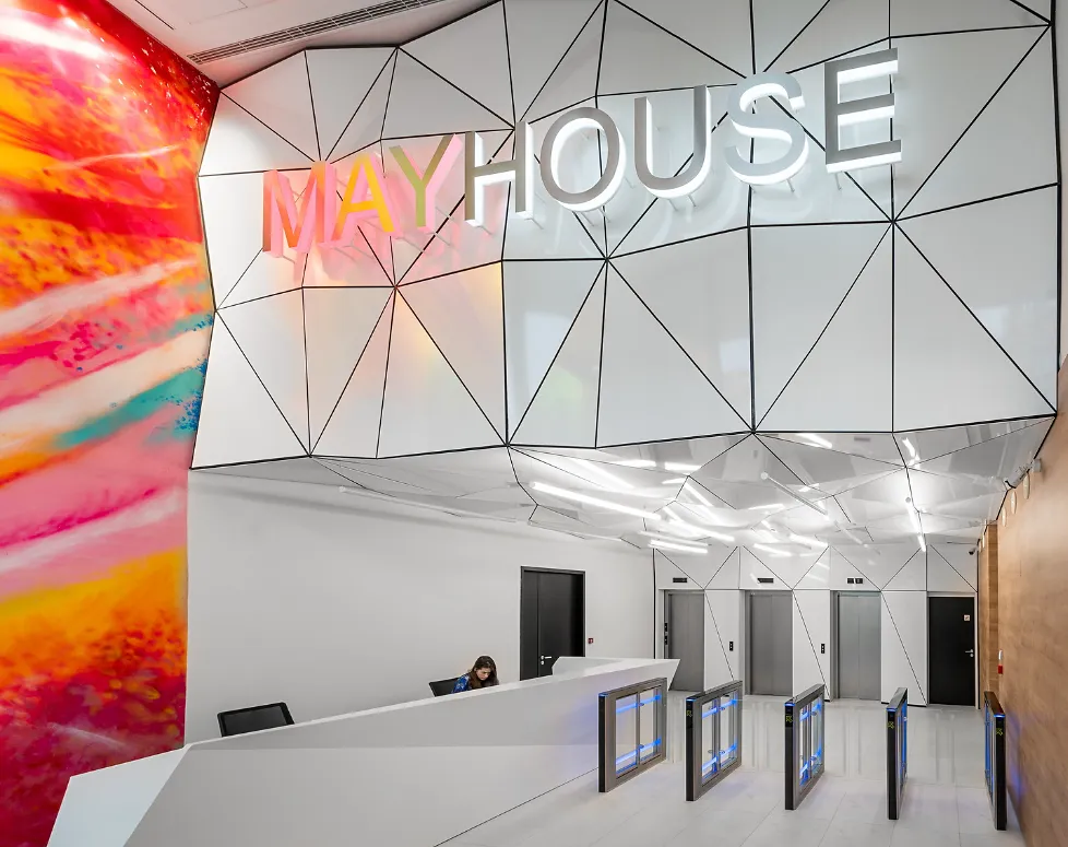 Administrativní projekt MAYHOUSE nabízí v 6 nadzemních patrech celkem 7 800 m2 moderních kanceláří třídy A, obchodní jednotku a 69 parkovacích míst. Nájemcům umožní jedinečnou příležitost, umístit své logo společnosti na vnitřní straně fasády, kde je uvidí až 100.000 lidí denně, kteří projedou kolem budovy.