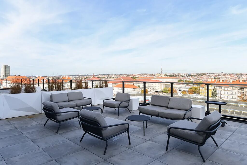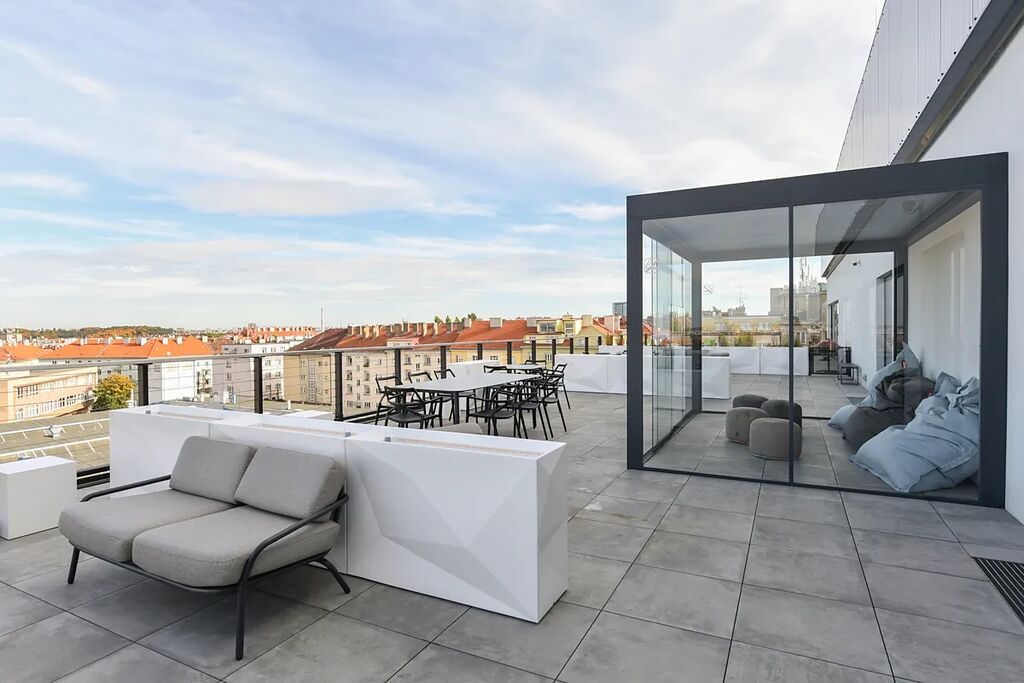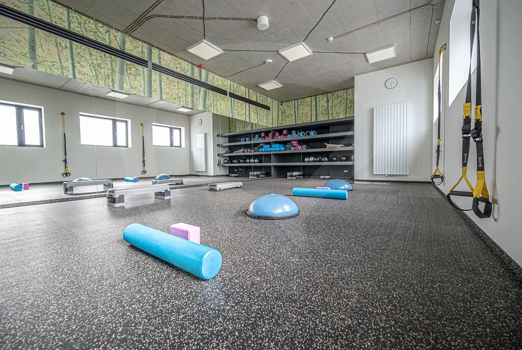 V budově se nachází kolárna, šatny se sprchami, prostor pro aerobní cvičení a společná terasa s krásným výhledem. Součástí terasy, kde budete moci relaxovat, je i vybavená kuchyňka s možností venkovního grilování.