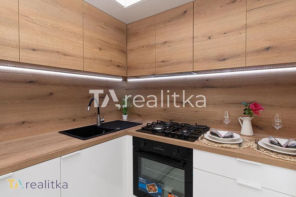 Kuchyňská linka na míru s vestavěnými spotřebiči (trouba, plynová varná deska, myčka, lednice)