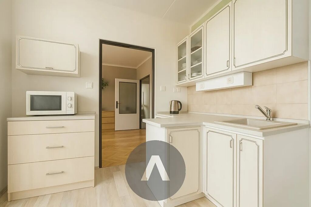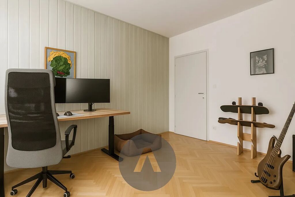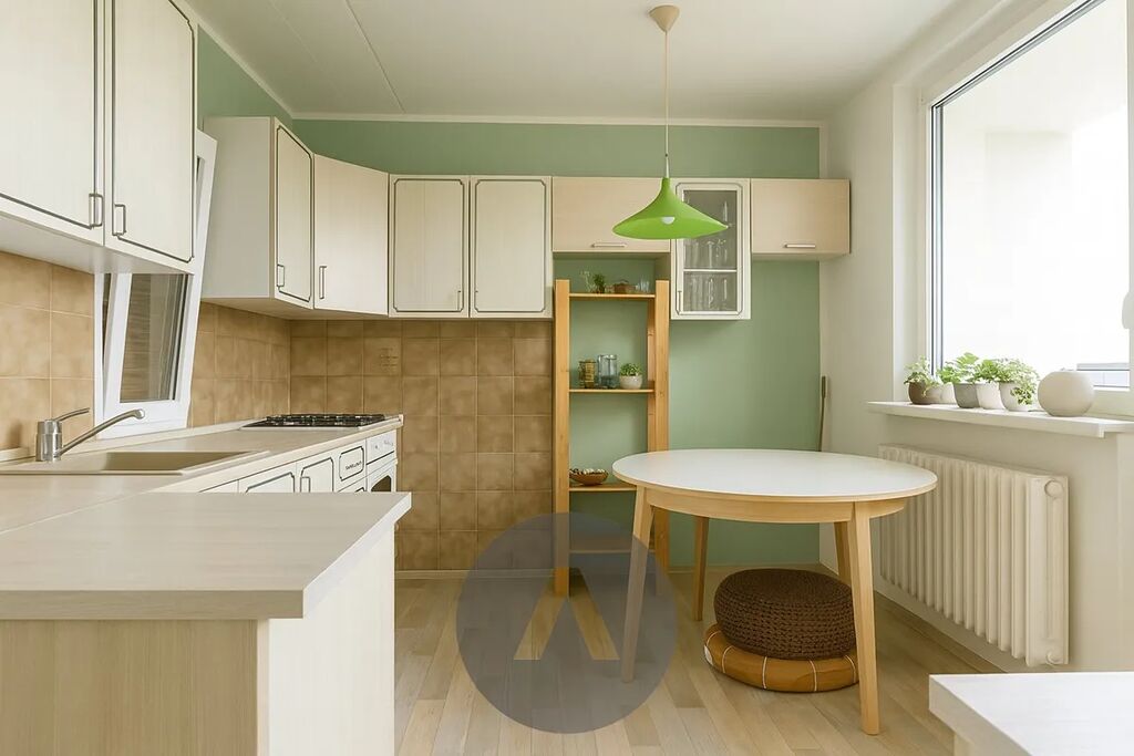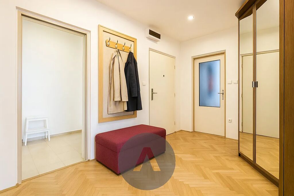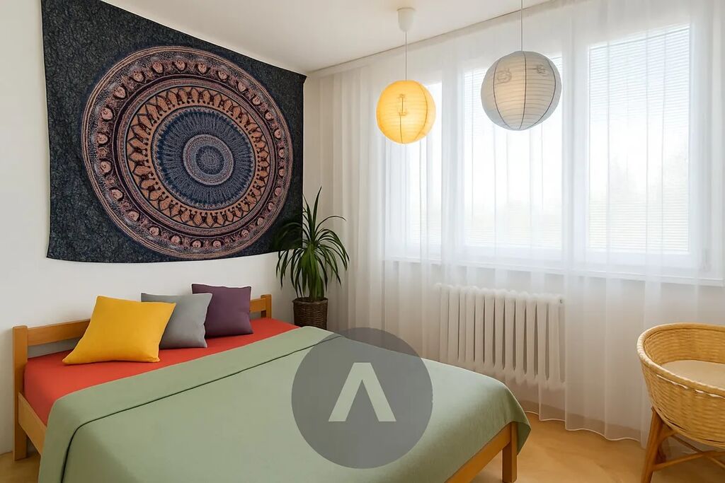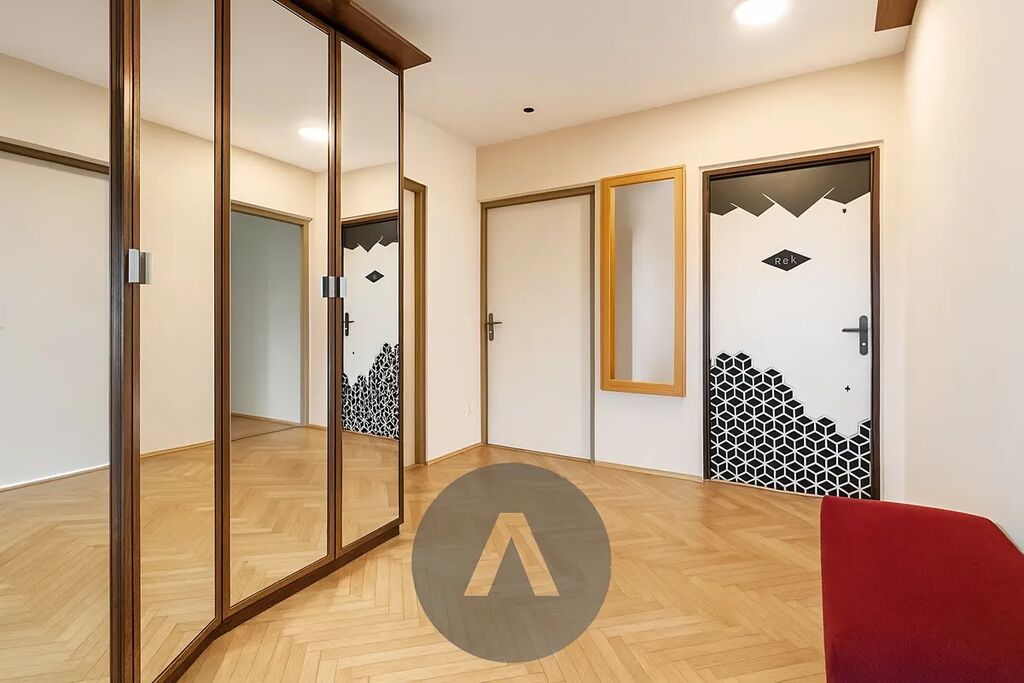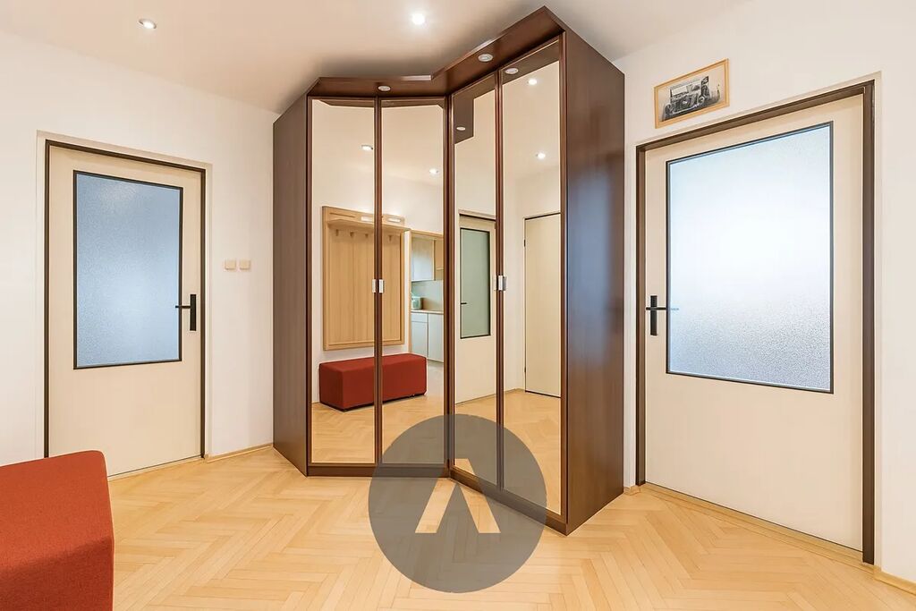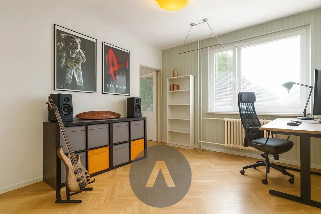 Dispozice bytu zahrnuje čtyři pokoje (s možností jednoduchého návratu na původní 3+1), samostatnou kuchyni, prostornou koupelnu s rohovou vanou, šatnu, lodžii s výhledem a sklep. Oceníte orientaci na východ i západ – byt je prosluněný celý den. Podlahy tvoří parkety, lino a dlažba, jádro je zděné, elektroinstalace v mědi, okna plastová. Celkový stav je velmi dobrý, ihned obyvatelný.