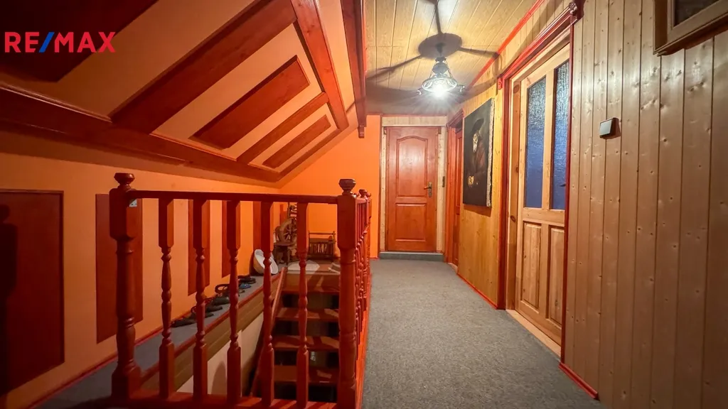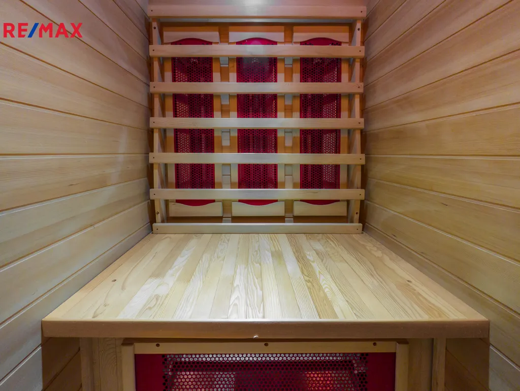 V patře chalupy najdete čtyři pokoje, šatnu a WC. Je zde i sauna značky Hanscraft, která vám umožní dopřát si zasloužený odpočinek po dlouhém dni stráveném v práci nebo přírodě.