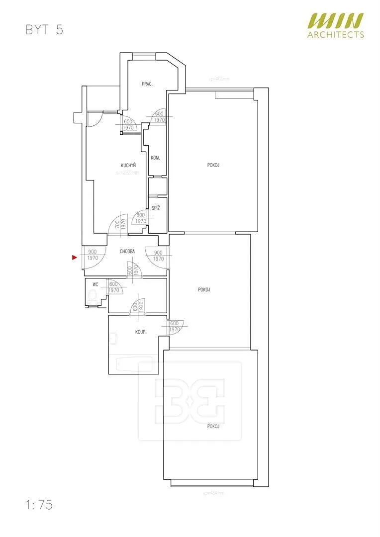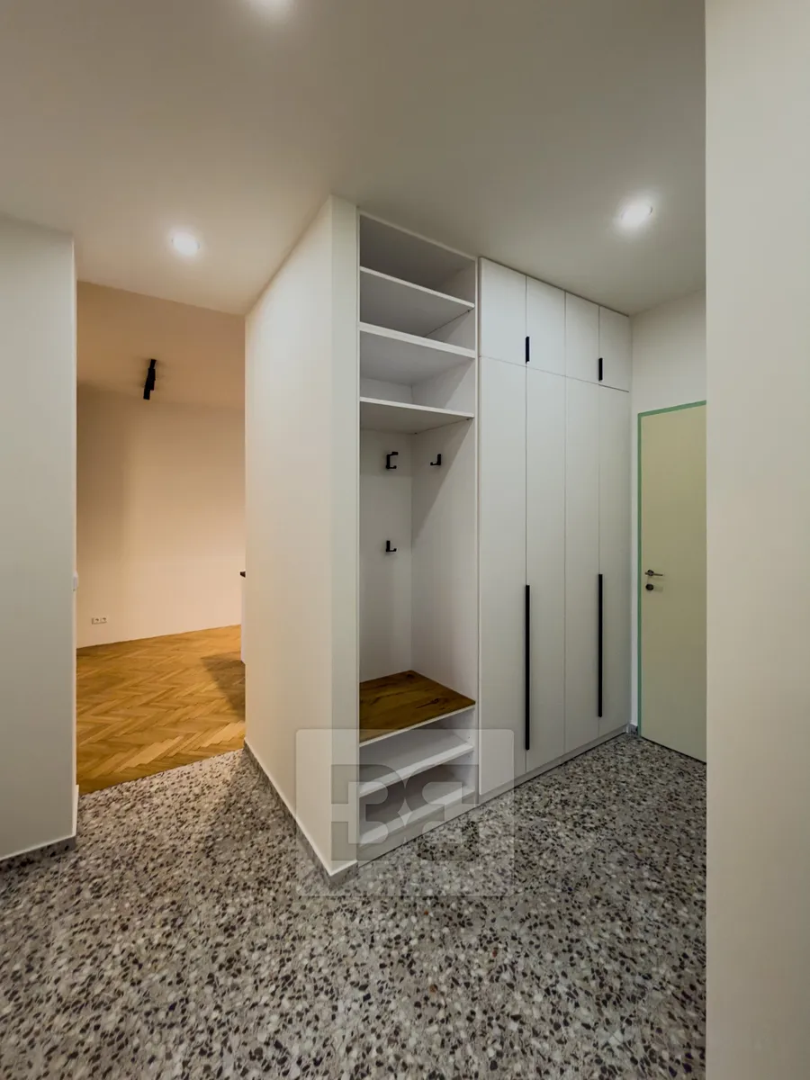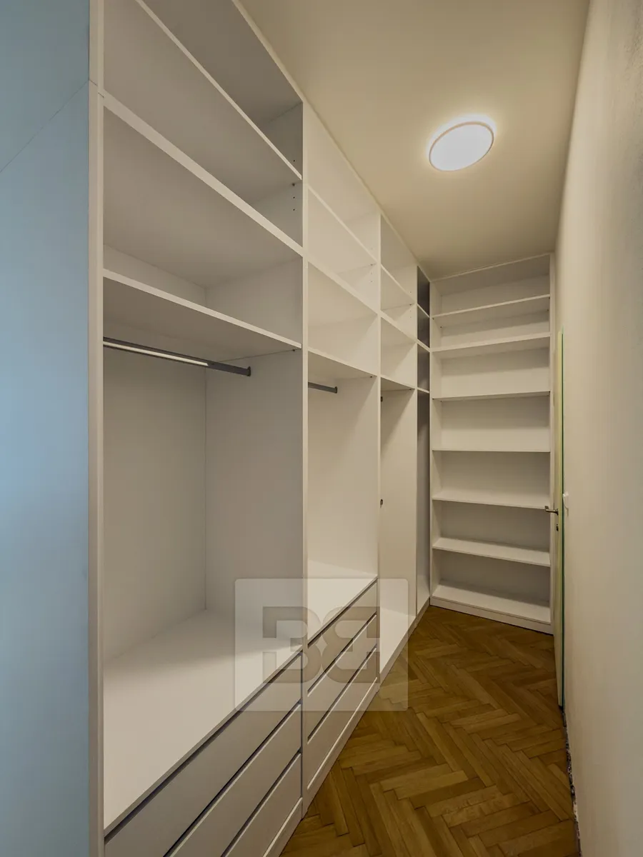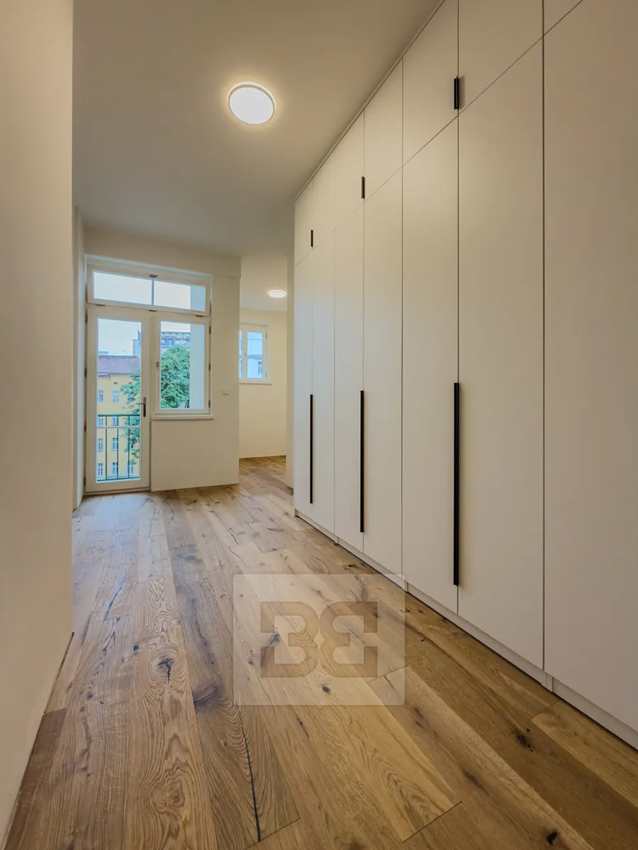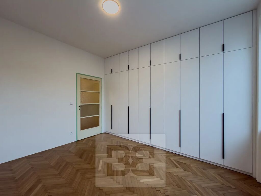 Nabízíme k dlouhodobému pronájmu jedinečný byt 4+kk o rozloze 118 m2, který se nachází ve třetím patře funkcionalistického domu s výtahem, v ulici Vinařská u Strossmayerova náměstí. Byt prošel kompletní a náročnou rekonstrukcí: renovace podlah, nové koupelny, nová kuchyně a vestavný nábytek, nová okna. Dominantou bytu je prostorný obývací pokoj s kompletně vybavenou kuchyní, který se dá rozdělit původními skládacími dveřmi, představujícími velmi praktický prvek pro pružné členění prostoru. Krásná okna na celou šířku stěny zajišťují průnik velkého množství denního světla. Z haly se dostanete do hlavní ložnice, která je vybavena velkou šatnou a oddělenou koupelnou s WC a sprchovým koutem. Na druhém konci obývacího pokoje najdeme druhou ložnici s oknem do vnitrobloku a velkou vestavnou skříní. Z předsíně je vstup do menšího pokoje s balkonem, který může sloužit jako dětský pokoj nebo pracovna. Tento pokoj je též vybaven šatní skříní. Dále z předsíně vstoupíte do koupelny s vanou a na samostatné WC.