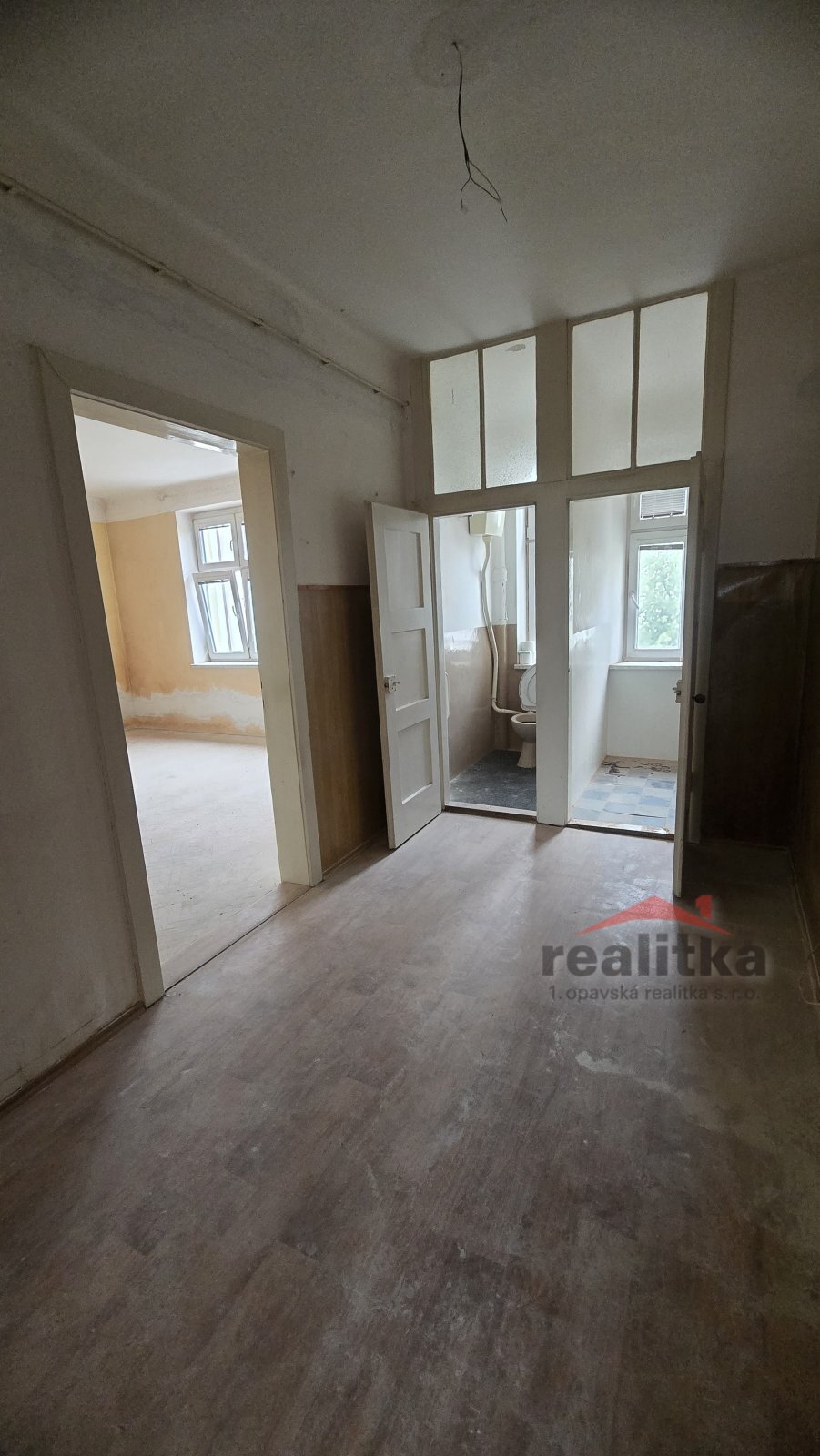 Nabízíme prodej bytu k rekonstrukci 3+1, 75m2 s balkónem a společnou zahradou v Opavě v klidné lokalitě na ul. Bezručovo náměstí. Byt se nachází v 1. patře cihlového domu. Celý dům je v podílovém spoluvlastnictví. V bytě je nový kondenzační, plynový kotel na vytápění a ohřev vody, nová topná tělesa a nová elektřina, v celém bytě jsou plastová okna. Byt je v současné době - kuchyň se vstupem na balkón a do malého pokojíčku. V předsíni je vstup na Wc, velké koupelny, komory, 1. pokoje a ten je průchozí s 2. pokojem. Dispozice bytu lze krásně zcela přebudovat na velký 3+kk s velkou šatnou. Byt je situovaný na JV a JZ stranu. Doporučuji prohlídku těm, kteří chtějí celkovou rekonstrukci dle vlastních představ. K bytu náleží velký sklep, půdní prostor a podíl na udržované zahradě. Zájemci o prohlídku dle domluvy s paní Gratzovou.
