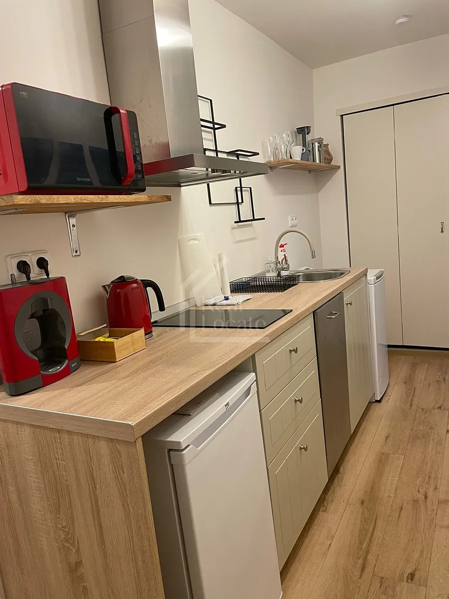 Byt je plně zařízen včetně vybavené kuchyně se spotřebiči, pohovky, jídelního stolu s židlemi, spacího patra a koupelny, která prošla nedávnou rekonstrukcí. Koupelna disponuje moderním sprchovým koutem a zrcadlem.