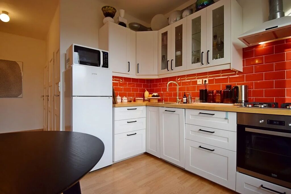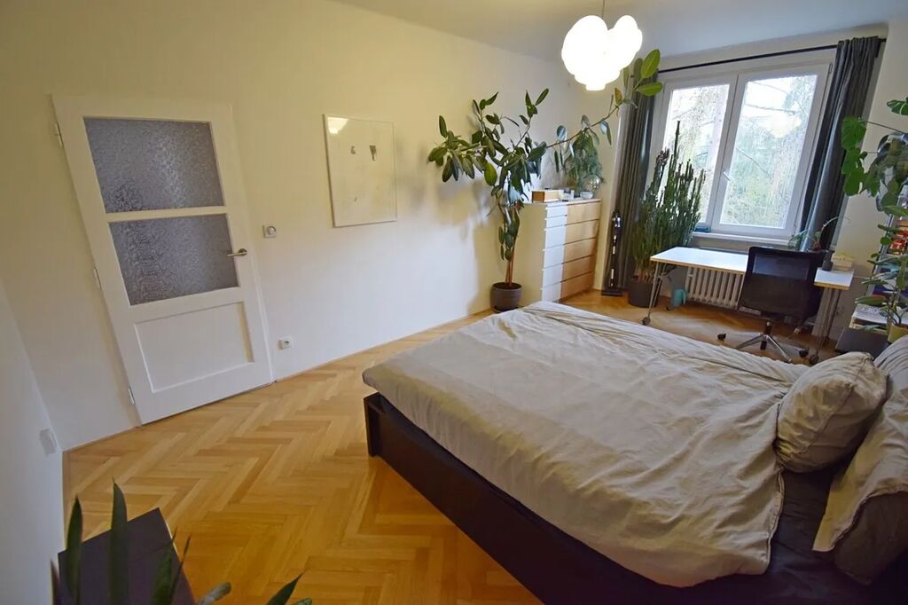 Velmi hezký, částečně zařízený byt po zdařilé rekonstrukci ve 3.patře cihlového domu bez výtahu v malebné části Vršovic. Z centrální chodby jsou samostatné vstupy do všech místností, které jsou situovány na jih do klidného parku před domem. V bytě zůstane pračka, velké skříně v předsíni, komoda a manželská postel s úložným prostorem v ložnici, rozkládací pohovka a dýhovaný stůl v kuchyni. Obývací pokoj i ložnice mají francouzské okno umožňující příjemný výhled do zeleně a zároveň propouštějí do místností mnohem více světla. V kuchyni je nová linka s masivní dřevěnou deskou z exotického dřeva Hevea a zánovní kvalitní spotřebiče (myčka, lednice, trouba, plynový sporák. Skvělá dopravní dostupnost. K nastěhování od 1.11.2025.