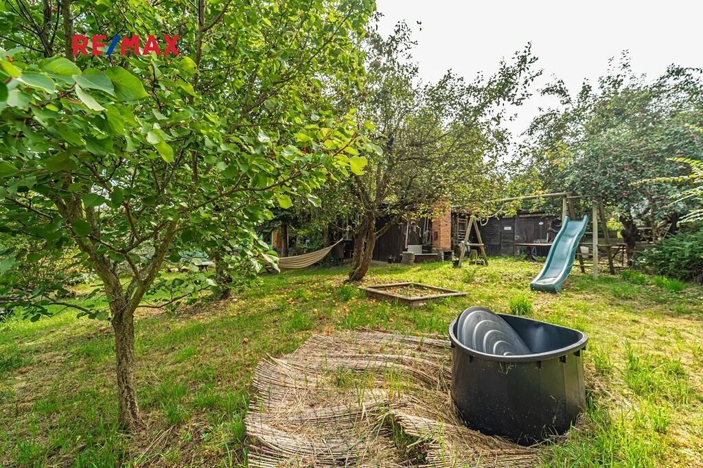 Na zahradě se nachází montovaná zahradní chata, skandinávské suché WC a je zde k dispozici sezónní voda. Pozemek je obklopen množstvím zeleně a ovocných stromů, které vytvářejí jedinečnou atmosféru – opravdovou oázu klidu a pohody.