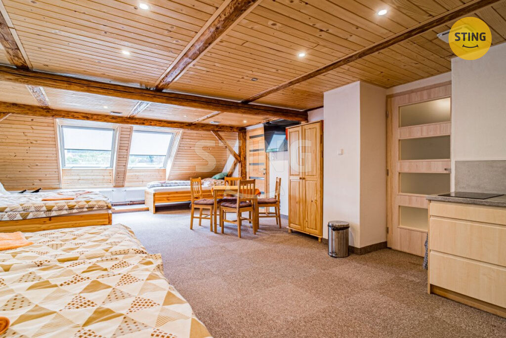 Penzion Velké Losiny u termálních lázní: 3 útulné byty včetně jednoho pro vozíčkáře, 13-21 lůžek pro celoroční relaxaci. Bazén, sauna, vířivka, masážní křeslo, pergola, grilovačka a parkování pro 4 vozy. Vybaveno rekuperací vzduchu, mobilní klimatizací, zabezpečením, a dokonce fotovoltaikou! Kompletně zrekonstruováno v roce 2021.