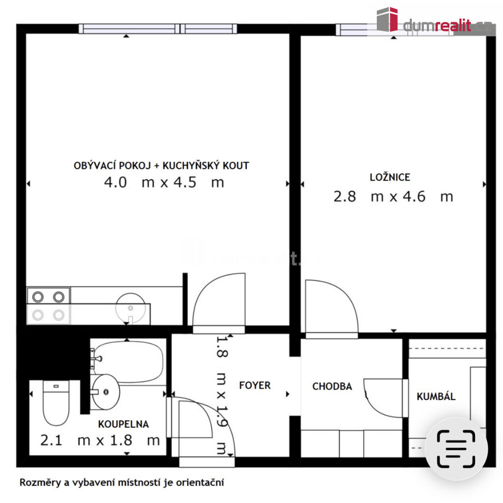 Dispozice zahrnuje obývací pokoj s kuchyňským koutem, ložnici, koupelnu s WC a v předsíni prostornou šatnu. K bytu náleží sklepní kóje a na patře mistnost s balkónem. Byt po rekonstrukci a v pěkném udržovaném stavu.