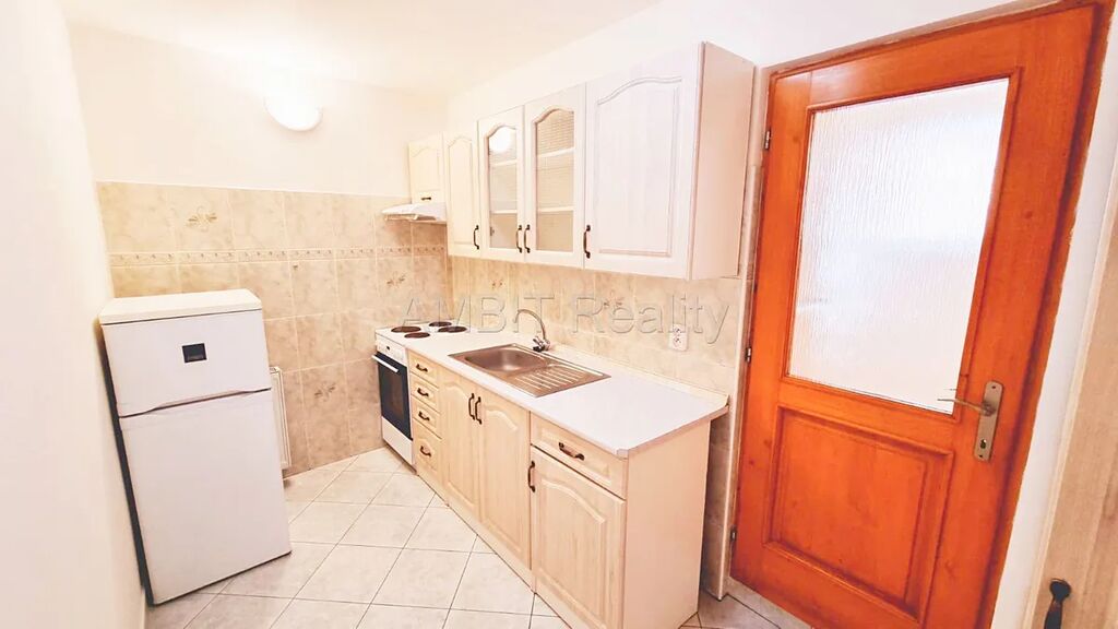 Byt prošel nedávnou rekonstrukcí a sestává z kuchyně, pokoje, koupelny s WC. Byt se pronajímá nezařízený s výjimkou kuchyňské linky, elektrického sporáku s troubou na pečení, odsavače par, lednice, bojleru. V koupelně se nachází umyvadlo, menší vana s pohodlným sedátkem a WC. Na podlahách v bytě je lino a dlažba. Okna bytu jsou orientována na jih a sever.