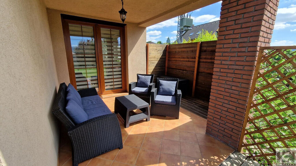 Pozemek má celkovou rozlohu 873m². Zastavěná plocha 143m². Podlahová plocha domu s terasou 195m² + garáž 18m²+ terasa 9m². Dům je napojen na městský vodovod, veřejnou kanalizaci a elektřinu. V celém domě je ústřední topení s elektrickým kotlem, podlahové topení je v obyvacím pokoji s kuchyní, chodbě a koupelně v přízemí. Krb má vyvedeny teplovzdušné rozvody do 2. NP. Teplá voda je ohřívaná solárním systémem. Okna v domě v každé obytné místnosti mají vnitřní stínící rolety a venkovní elektrické hliníkové rolety. Fasáda domu je částečně obložena červenými cihelnými pásky. Energetický průkaz PENB třida: F.