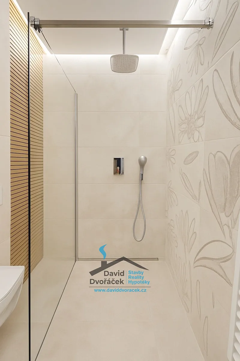 • Dvě koupelny: sprcha dole, velká koupelna s vanou nahoře – ideální pro rodinu.