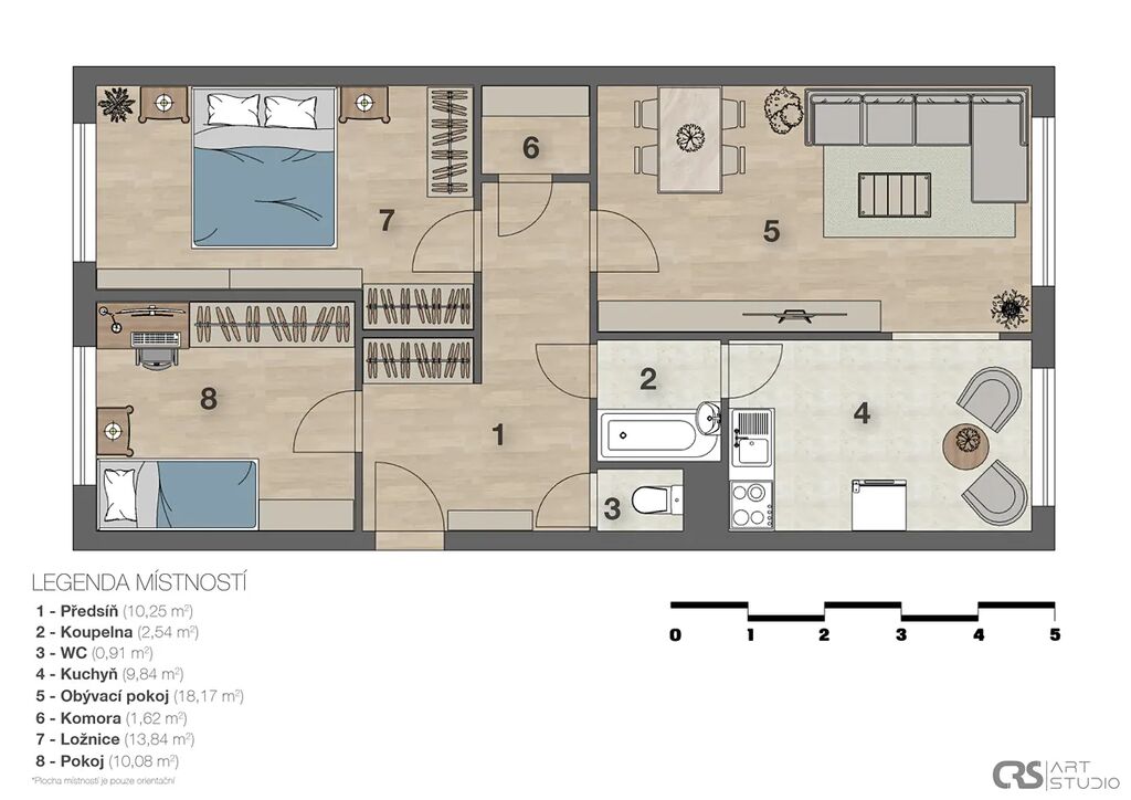 - dva samostatné pokoje - ideální pro ložnici a dětský pokoj