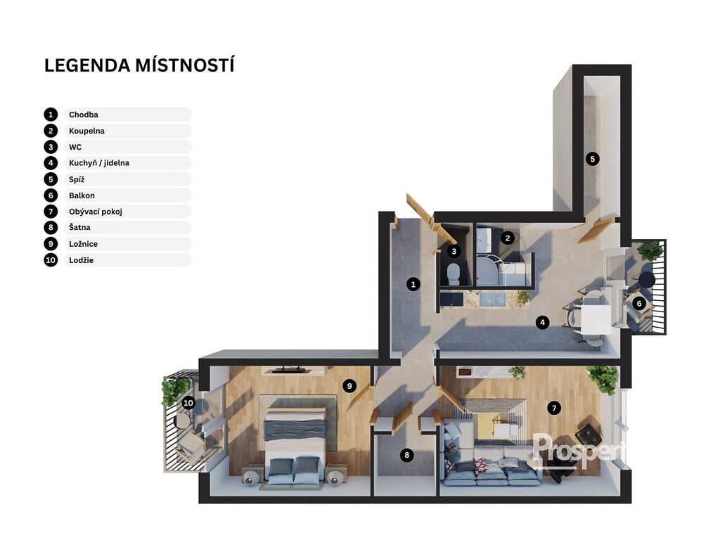 - Balkon i lodžie – dvě možnosti, kde si užít ranní kávu nebo večerní relax.