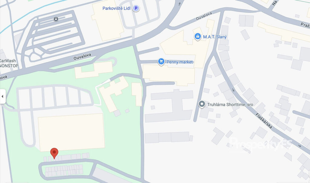 • autobusová zastávka Slaný, Pražská – cca 5 minut pěšky (spoje na centrum i Prahu)