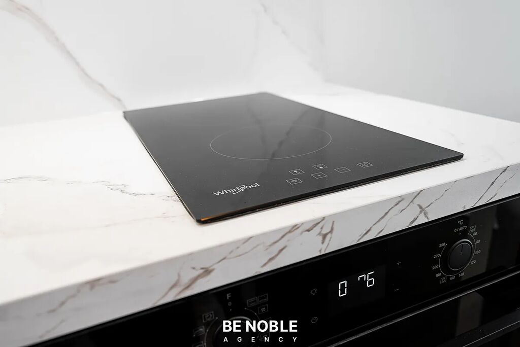 - obývací pokoj s plně vybavenou kuchyňskou linkou (indukční deska, vestavná trouba, myčka, lednice),