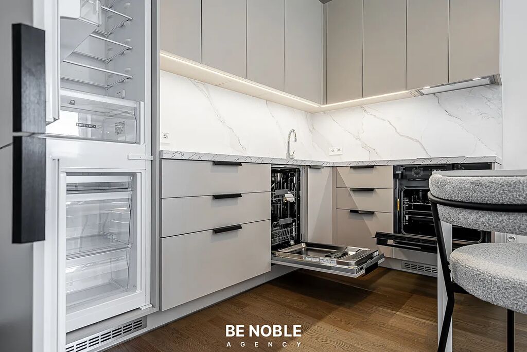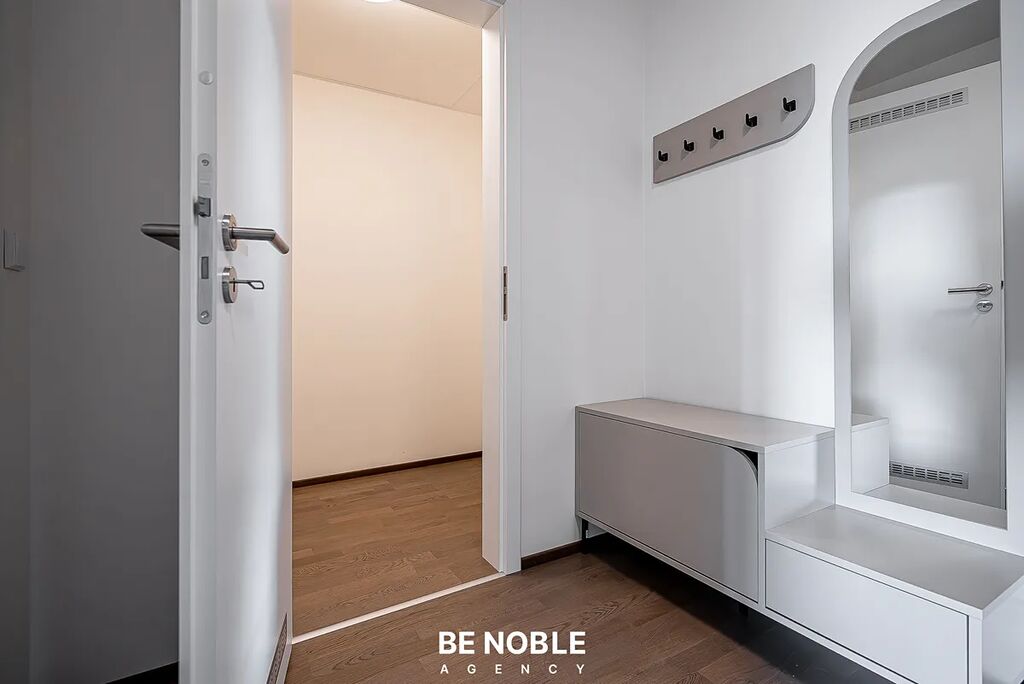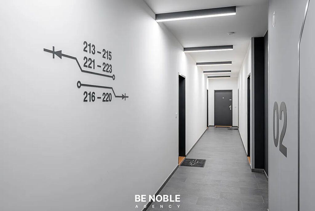 Byt má velmi praktickou dispozici a díky orientaci na západ a velkým oknům je světlý a vzdušný. Každý detail byl navržen s důrazem na komfort, praktičnost a moderní styl bydlení.