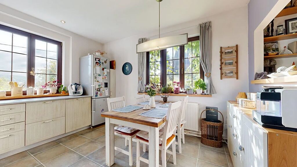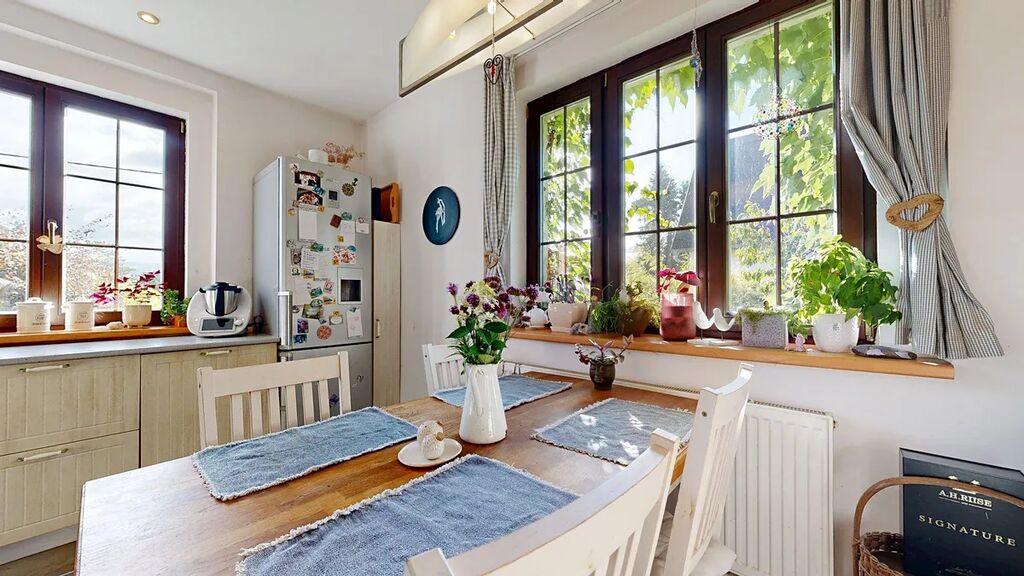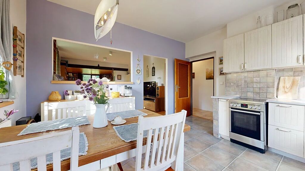 Nabízím k prodeji dům s výhledem, nad řekou Sázavou. Malebný domek o dispozici 4+1 s bohatým technickým zázemím je obklopen vzrostlou zahradou. Není zbytečně velký a přesto má všechno, co od domova můžete očekávat. Útulný podkrovní pokojíček pro každého člena rodiny a hlavně pohodlně a moderně řešený hlavní obytný prostor s velkorysou kuchyní, krbem a komfortním vstupem na zahradu. Kontakt se zahradou vás tady nenechá chladnými v žádném ročním období. Teď na podzim zahrada hraje všemi barvami a slunce vás provází od rána, kdy nahlíží do kuchyně, až do večerní siesty na terase.