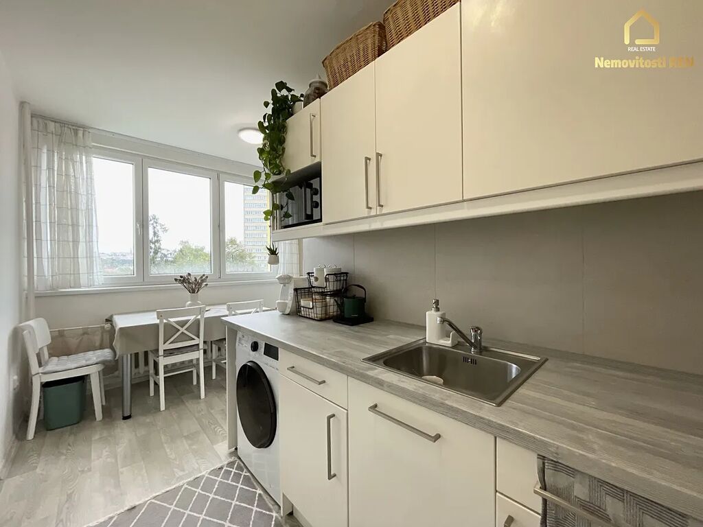 Dispozice bytu je velmi praktická – obývací místnosti jsou prostorné a neprůchozí, což zajišťuje dostatek soukromí i komfortu. Před třemi lety proběhla v bytě rekonstrukce. Podlahovou krytinu tvoří kombinace linolea a dlažby v koupelně a na toaletě. Kuchyně je vybavena linkou v bílém dekoru, špajzem, troubou, plynovou varnou deskou a odsavačem par.
