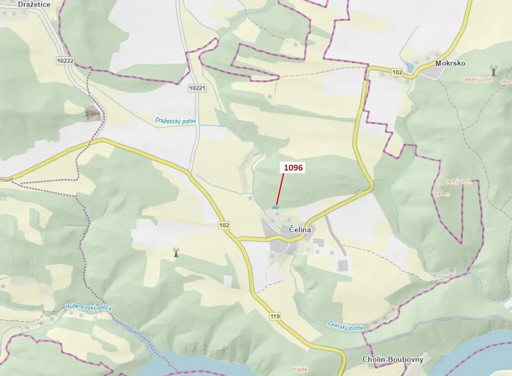 Lesní pozemek o výměře 767 m2, parcelní číslo 1096, podíl 1/1, katastrální území Čelina, obec Borotice, obec s rozšířenou působností Dobříš, okres Příbram, Středočeský kraj.