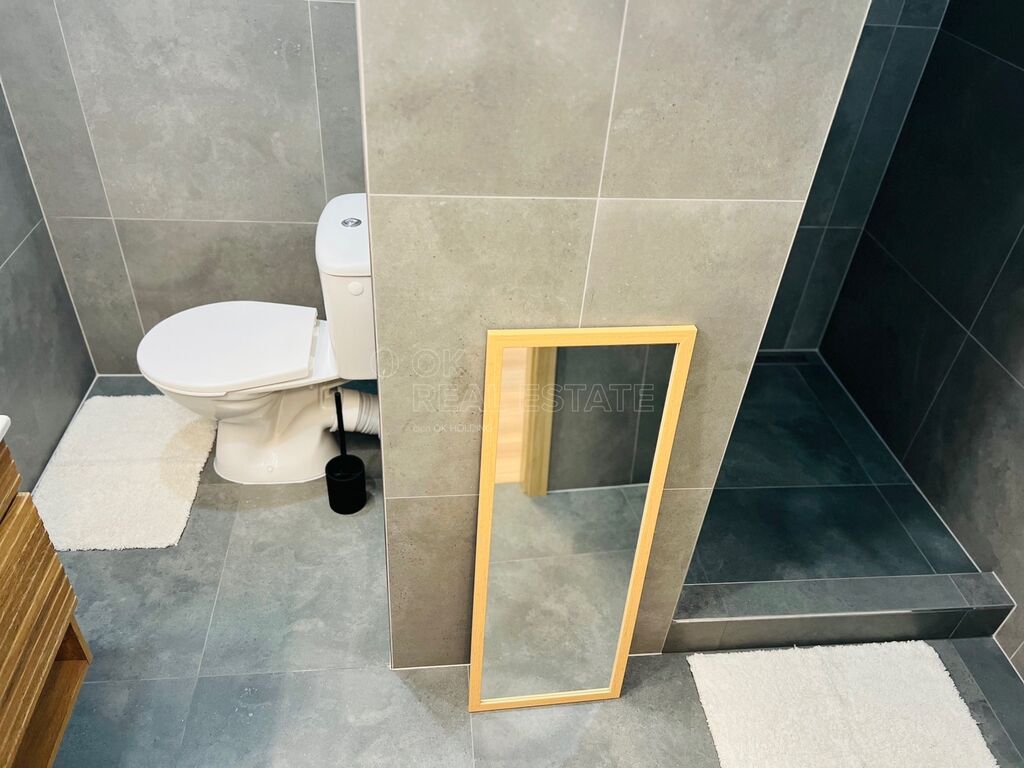 Byt má balkón, sprchový kout, ledničku, novou kuchyňskou linku, vaření na indukci, troubu na pečení, nové rozvody vody, elektřiny.