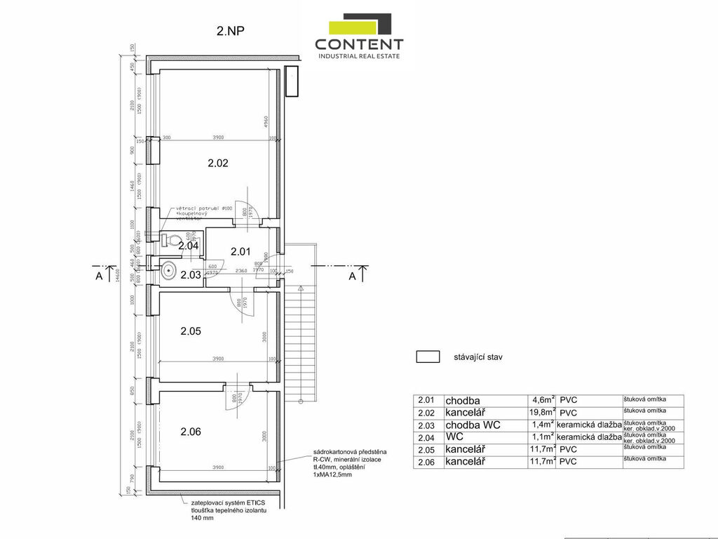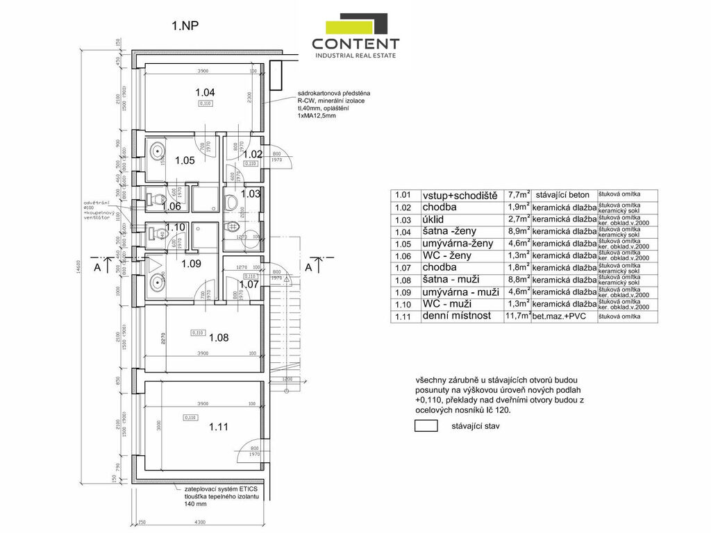- kanceláře a sociální zázemí: 109 m²
