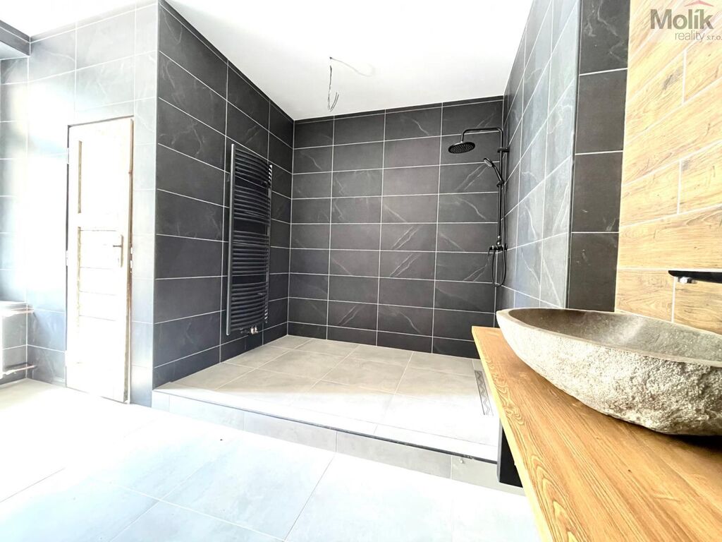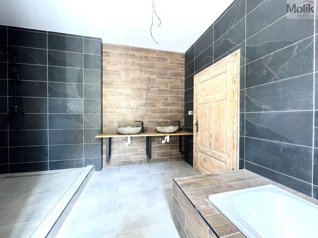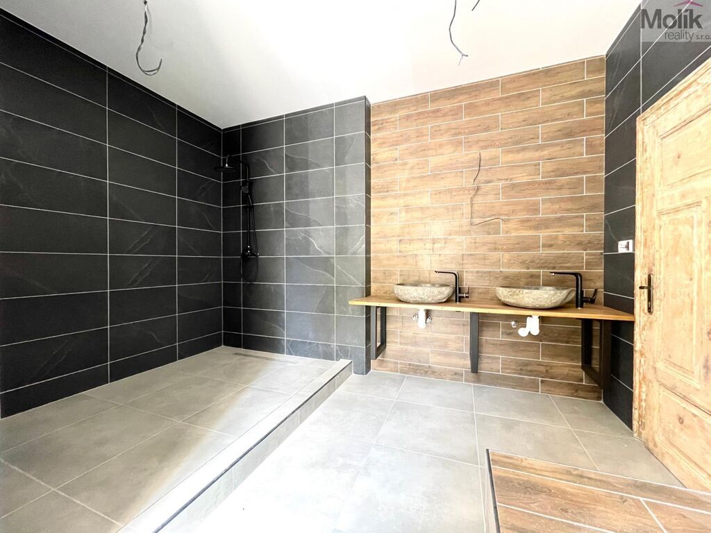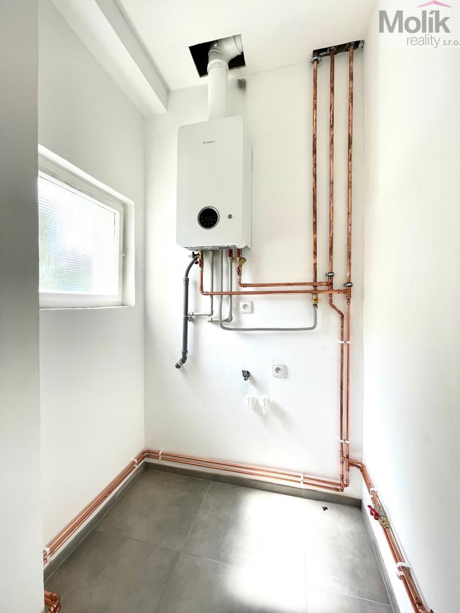 Byt se nachází v 1 patře cihlového domu. Byt má velkou koupelnu s vanou a sprchovou nikou, dvě kamenná umyvadla. Kuchyňská linka s vestavěnými spotřebiči (trouba, varná plynová deska). Podlahová krytina - plovoucí podlaha, dřevěné interiérové dveře. Vytápění bytu a ohřev vody zajišťuje plynový kotel.