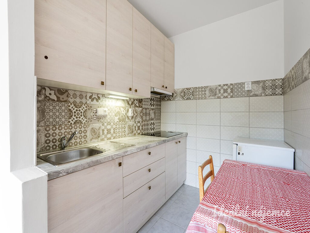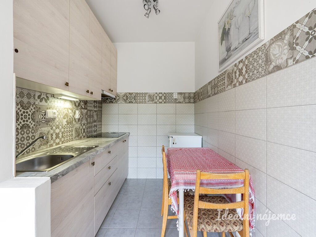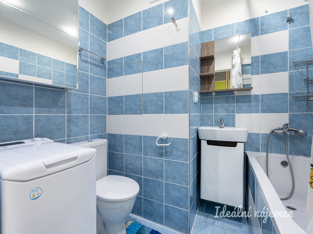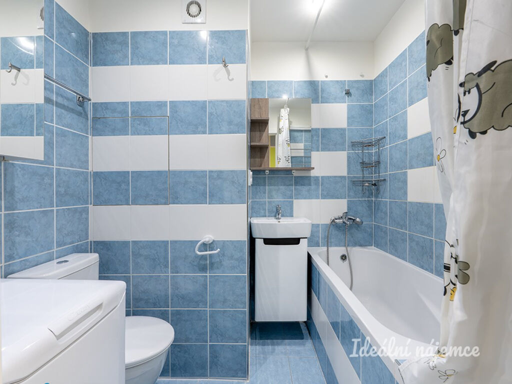 Byt je částečně vybavený, což umožňuje doladit interiér podle vlastního vkusu. Kuchyňský kout je vybaven lednicí, indukční varnou deskou, digestoří a jídelním koutem. Obývací prostor nabízí postel, úložný prostor a dostatek místa pro vlastní doplňky či pracovní kout. Koupelna je vybavena vanou, umyvadlem, pračkou a toaletou.