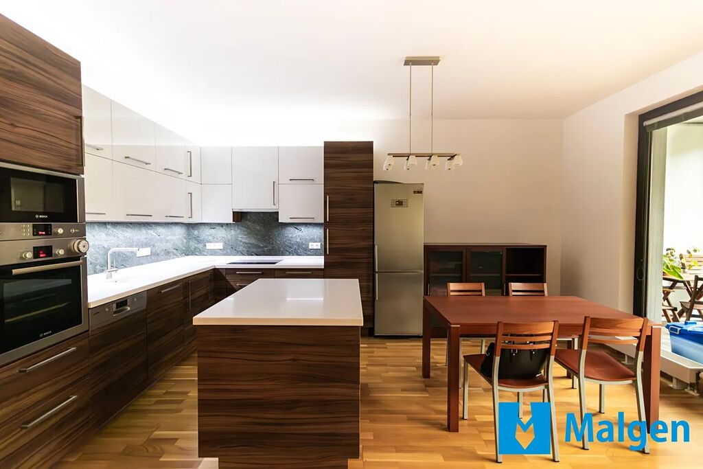 Byt nabízí velkoplošná okna, dřevěné podlahy, vestavěné skříně, bezpečnostní dveře, žaluzie, myčku, , pračku, Výtah vede přímo z garáže, k bytu náleží dvě garážová stání (v ceně).