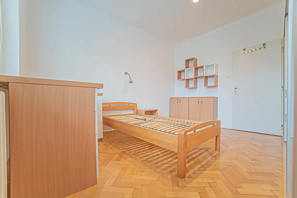 Prostorná ložnice s vestavěnou skříní nabízí dostatek místa pro odpočinek i úložné řešení.