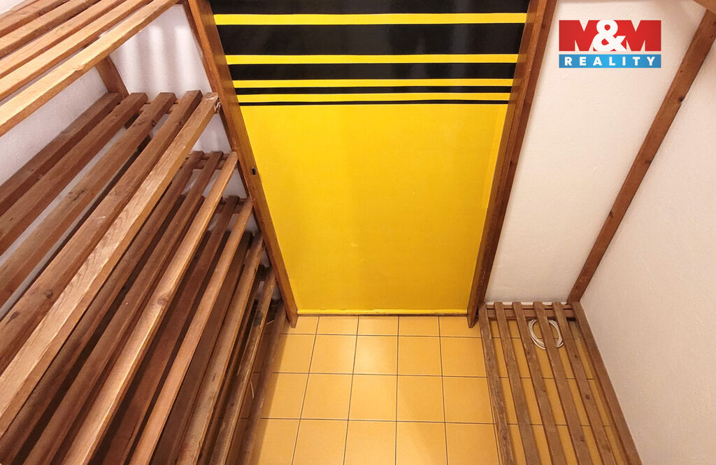 Dispozice bytu zahrnuje kuchyň s jídelní částí, koupelnu se sprchovým koutem, umyvadlem a místem pro pračku, samostatnou toaletu s umyvadlem, prostornou předsíň s šatnou, a tři neprůchozí pokoje, z nichž jeden má vstup na lodžii. K bytu náleží také komora v mezipatře.