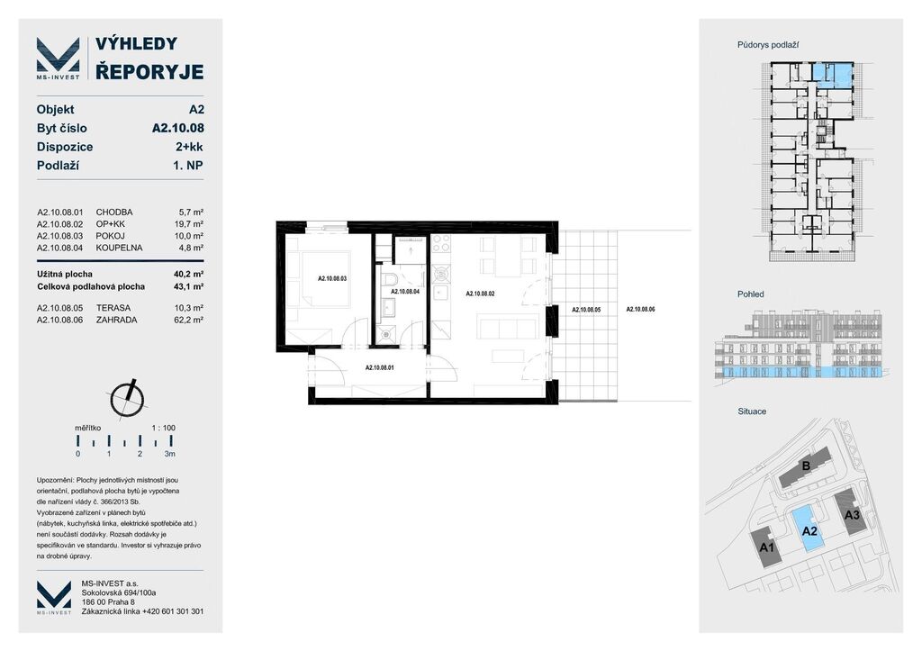 Zcela nové investiční 2KK s terasou a s předzahrádkou v nové energeticky úsporné rezidenci Výhledy Řeporyje s kolaudací 11/2025.