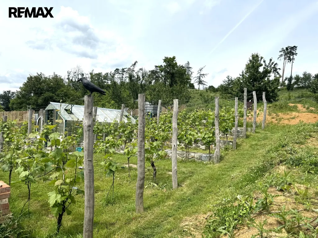 Velkou výhodou je uzavřený velmi vkusně řešený dvůr který nabízí absolutní soukromí kde se nachází letní kuchyň, vinný sklep s lisem, dilna, pergola, garáž s montážní jámou a nad garáží je vybudována obytná chatka která může být využita pro případné návštěvy nebo i jiné využití. Na zahradě se dále pak nachází spousta ovocných stromků, menší vinohrad, záhony, skleník a další rozpracovaný vinný sklep.