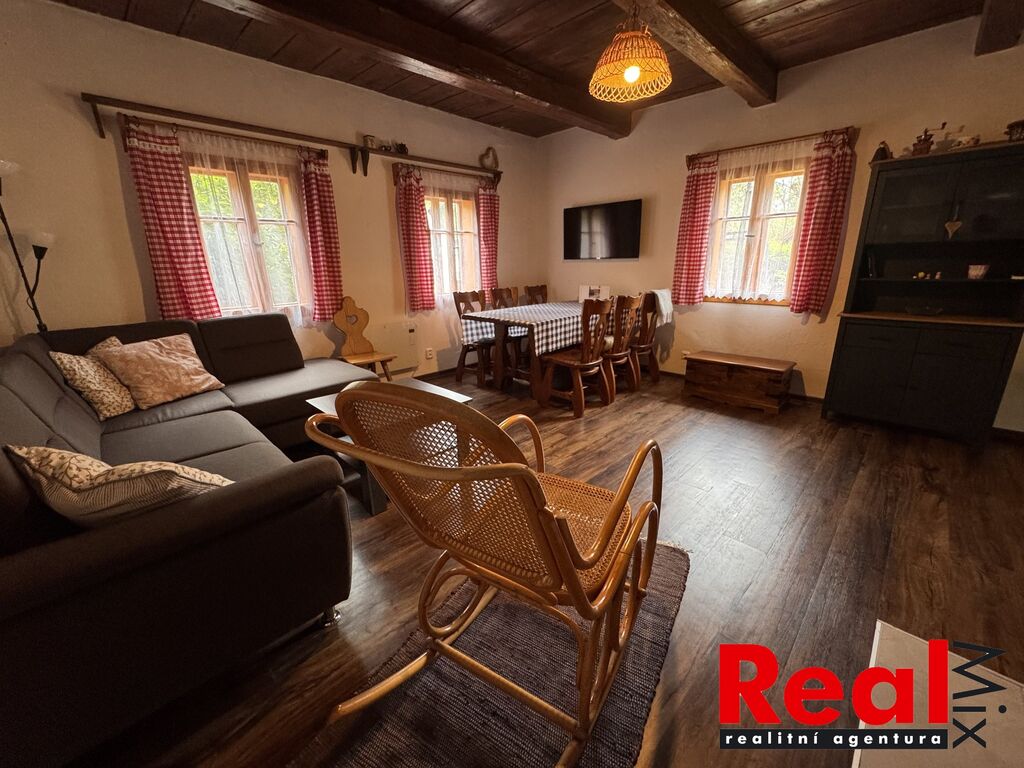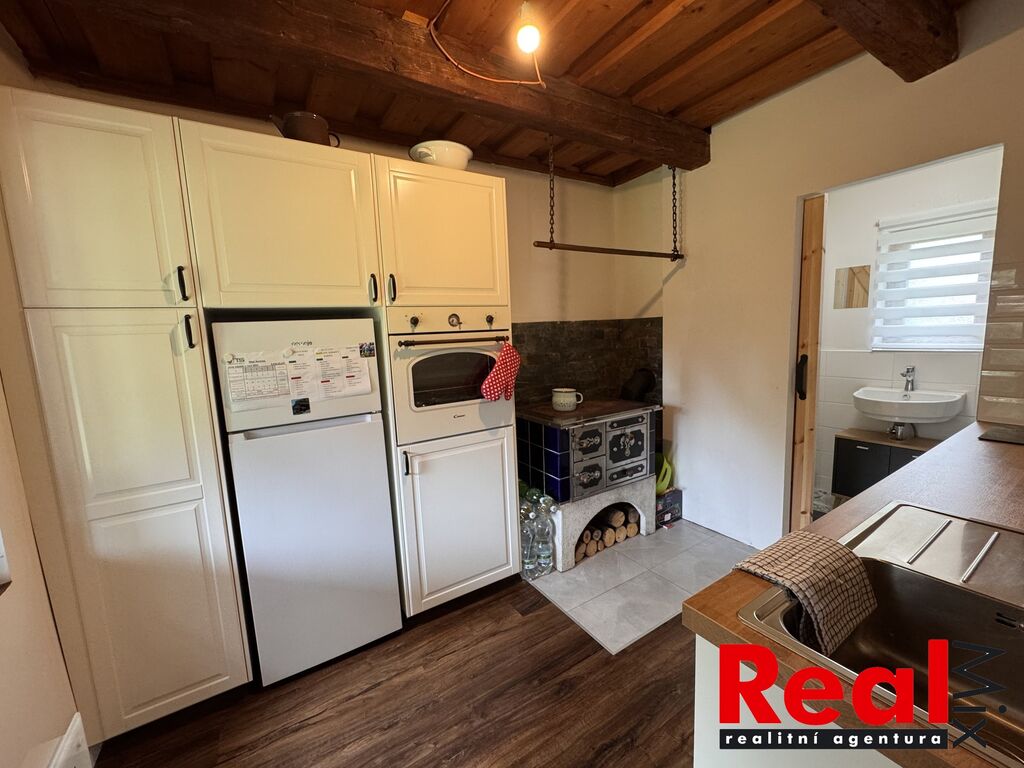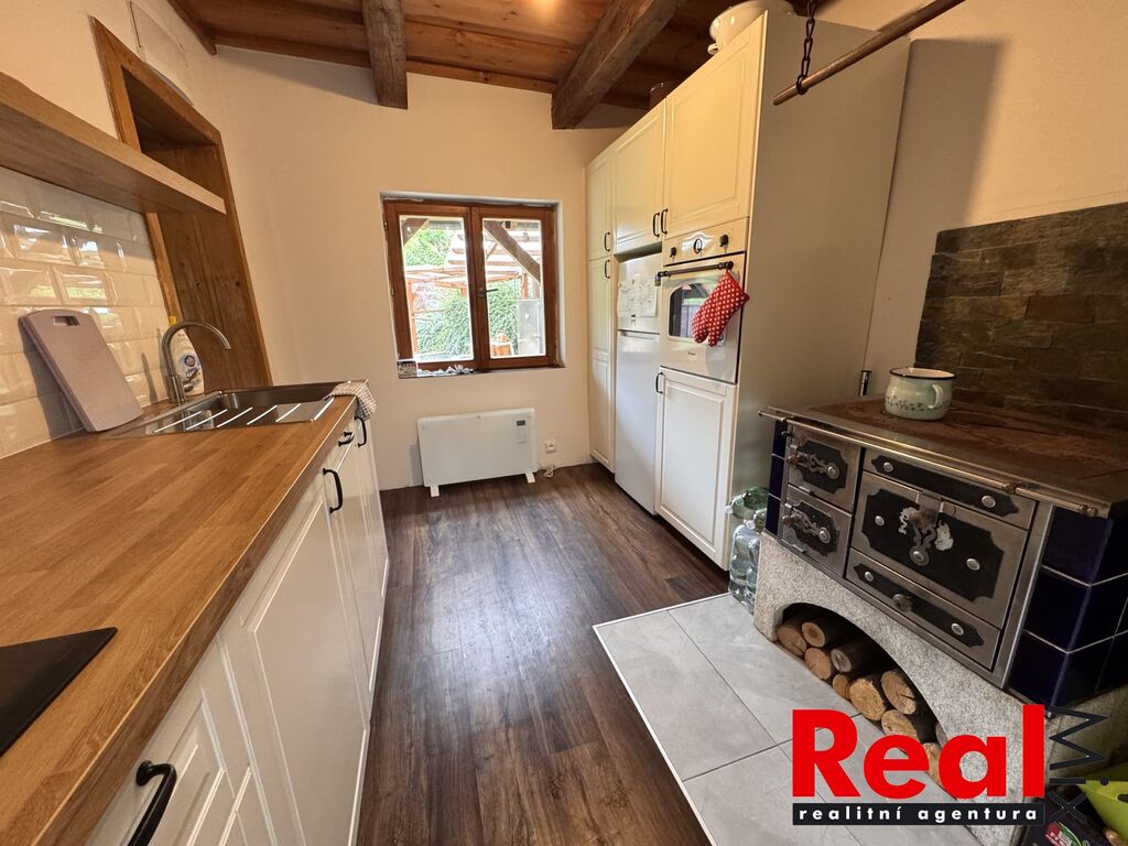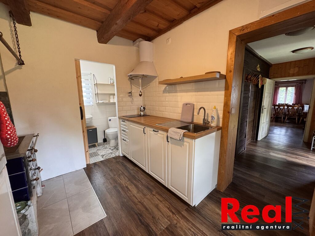 Nabízíme prodej velmi pěkného RD (chalupy) po kompletní a velice zdařilé rekonstrukci v obci Seninka, okr. Vsetín. Nemovitost se nachází na velice klidném a pěkném místě Valašska poblíž CHKO Beskydy. Obec je neprůjezdná a tedy naprosto klidná a vhodná k rekreaci. Jedná se o stavbu typu valašská dřevěnice, která je po kompletní rekonstrukci z let 2016 a následně 2022-24. Dům má dvě nadzemní podlaží s dispozicí 4+1, zastavěná plocha domu je 87m2. Chalupa se nachází na pěkném pozemku o celkové ploše 659m2. V přízemí domu se nachází kuchyně s novou kuchyňskou linkou včetně spotřebičů (el. trouba, varná deska, myčka nádobí, lednice, pračka), koupelna se sprchovým koutem, menší ložnice a prostorný obývací pokoj (vše má samostatné vstupy z předsíně). V patře jsou pak dvě ložnice se samostatnými vstupy a menší galerie okolo schodiště. Nemovitost je po kompletní rekonstrukci, jsou zde veškeré nové rozvody vody, elektřiny atd., kompletně nové podlahy (vč. izolací), okna, dveře, nová střecha včetně izolací, koupelna, kuchyňská linka, dveře atd. Příjezd autem je možný až na pozemek. Stavba je napojena na elektřinu, obecní vodu, k dispozici dále studna s užitkovou vodou, septik, plyn na hranici pozemku. Vytápění je řešeno kachlovými kamny na dřevo (kuchyň a obývací pokoj) a elektrickými přímotopy (majitelé používají jen výjimečně). K chalupě patří menší sklep, půda nad ním a další úložné neobytné prostory. Obec není průjezdná a jedná se tedy o naprosto klidné místo vhodné k rekreaci. Pěkně udržovaný pozemek, na pozemku prostor pro posezení, udírna i několik záhonů za chalupou. Nemovitost je nabízena včetně většiny vybavení dle fotodokumentace. V blízkosti obce velké množství turistických cílů (vodní nádrž Karolinka, Velké Karlovice cca 30 minut), přímo v obci rozhledna Vartovna. V obci obchod a hospoda. Velice malebné a klidné místo ideální na rodinnou rekreaci, případně i na komerční využití ke krátkodobým pronájmům. Více info v RK.