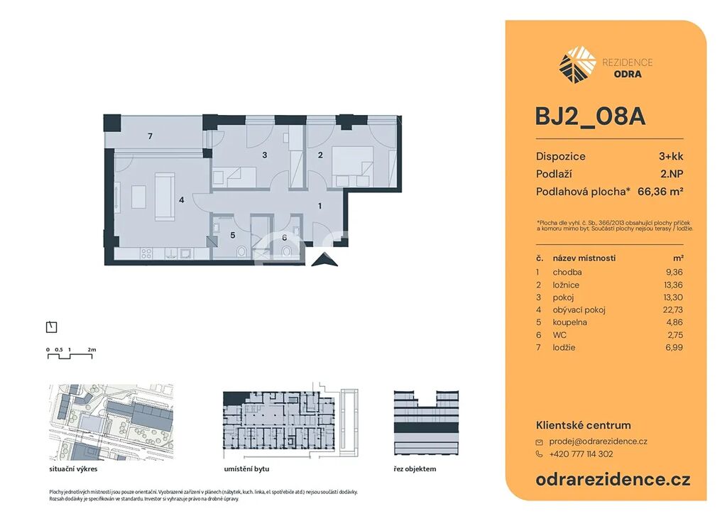 Hledáte nový domov v klidné a přitom skvěle dostupné lokalitě? Rezidence Odra je moderní projekt s duší i budoucností, který vzniká na místě bývalého obchodního centra v pražských Bohnicích. Nyní vám nabízíme konkrétní volnou jednotku 3+kk o ploše 66,36 m2, nacházející se ve 2. nadzemním podlaží budovy ve fázi dokončení.