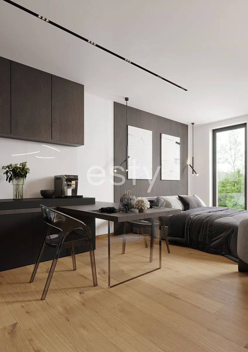 Byt zaujme vysokými stropy, které umocňují vzdušnost interiéru, a velkoformátovými okny s jižní orientací, díky nimž je prostor krásně prosvětlený.