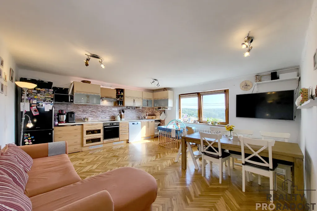 Srdcem domu je světlá kuchyně propojená s jídelnou a obývacím prostorem. Na obytnou část navazuje pokoj využívaný jako dětský, dále pracovna a ložnice, která prošla kompletní rekonstrukcí v letošním roce. Prostorná koupelna s vanou a WC.