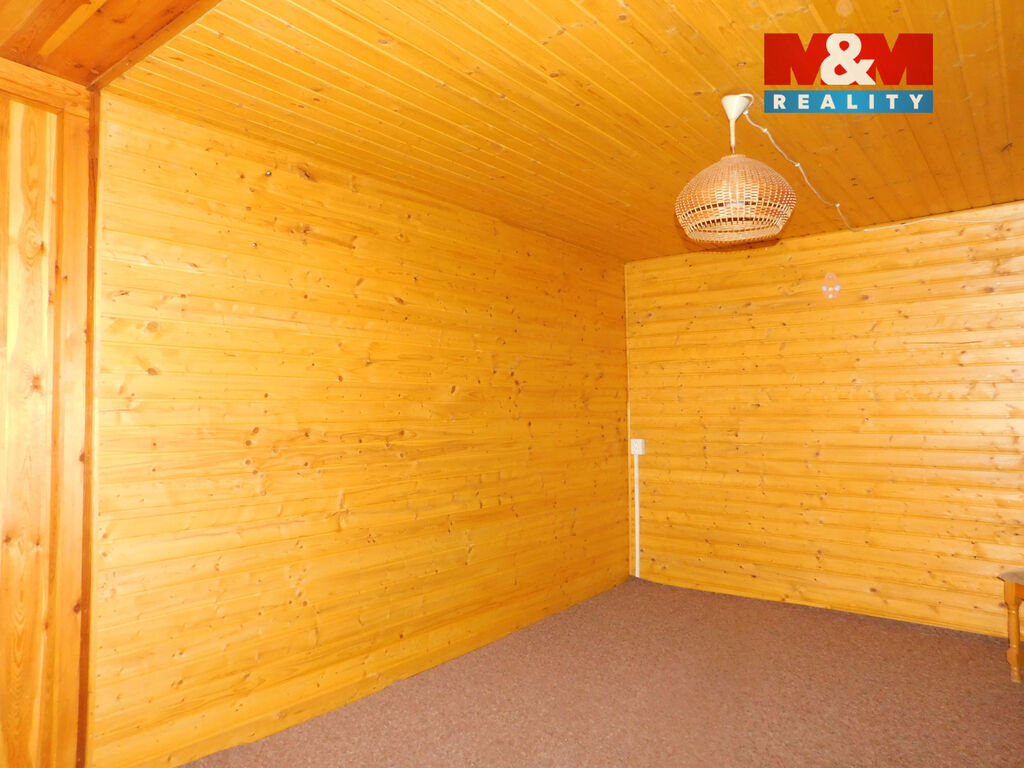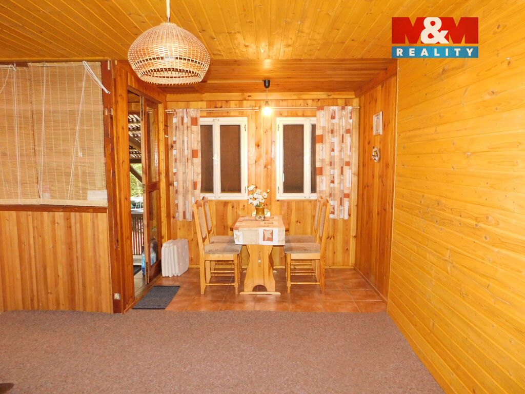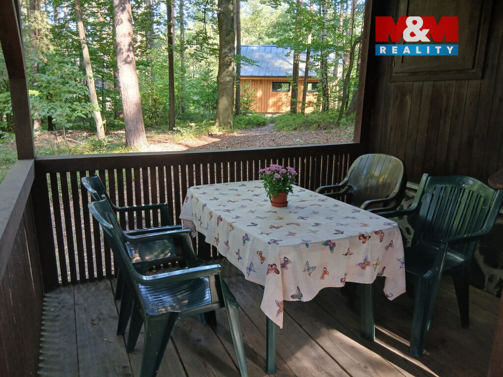 Dispozice: zádveří, obývací pokoj, ložnice, kuchyňský kout a sprchový kout s WC a umyvadlem. Velkou předností je krytá terasa s výhledem do lesa a na vlastní ohniště. K chatě s evidenčním číslem náleží také podíl 1/24 na přilehlém lese.