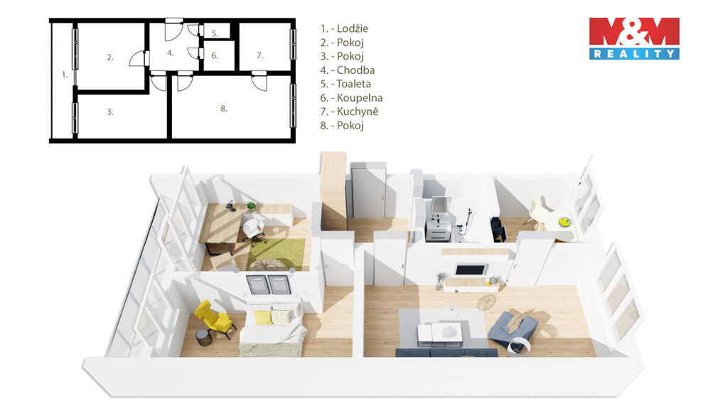 Nabízíme k prodeji prostorný byt 3+1 v osobním vlastnictví, nacházející se v klidné části obce Polabiny, Pardubice. Byt s lodžií o celkové ploše 69 m² je umístěn v 5. nadzemním podlaží panelového domu s výtahem. Dispozice bytu zahrnuje tři pokoje, kuchyň a zasklenou lodžii, ideální pro relaxaci. Byt je v původním, avšak velmi udržovaném stavu s umakartovým jádrem a PVC podlahami. Dům prošel revitalizací včetně zateplení, výměny stoupaček a instalace nových PVC oken, kromě oken před lodžií, která zůstávají původní dřevěná. K bytu náleží sklepní kóje. V okolí najdete mateřskou školu a velké dětské hřiště, což dělá z této nabídky ideální volbu pro rodiny. Pro více informací kontaktujte makléře.