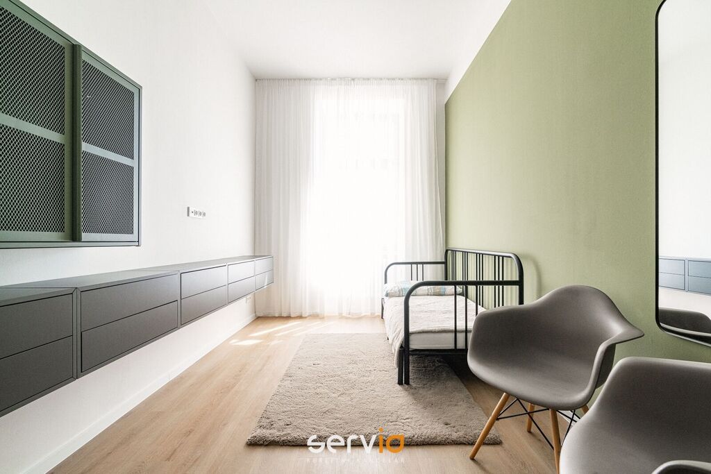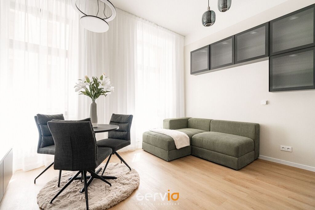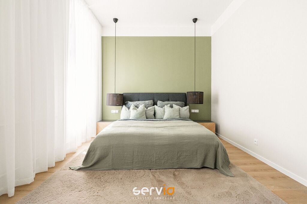 Při rekonstrukci byly použity vinylové plovoucí podlahy, povrch srovnán vyrovnávacím podsypem, podkladem fermacell a nivelací ve všech místnostech. Vyměněny všechny rozvody sítí (topení původní - tělesa a rozvody revitalizované nátěrem). V koupelně a WC je položená dlažba. Bezfalcové dveře se skrytými panty. Vybavení dále zahrnuje kuchyňskou linku se zabudovanými spotřebiči (el. trouba, mikrovlnná trouba, indukční deska, lednice s mrazákem), vestavné skříně, velká postel, sedačka, stoly, židle a ostatní nábytek na fotografiích. Koupelna nabízí nadstandardně prostorný sprchový kout s vyspádovaným odtokem, prostor na pračku a sušičku. Samostatné závěsné WC s pod-omítkovým splachováním a s bidetovou sprchou. Designové záclony Décora na míru. Chytré vypínače + HUB pro ovládání světel pomocí mobilní aplikace. U většiny osvětlení lze nastavit intenzita, v obývacím pokoji navíc i "teplota" světla. Prostorná šatna, sloužící zároveň i jako průchozí chodba do ložnice a dětského pokoje/pracovny. Vytápění a ohřev vody dálkově z tepláren. V bytě je zapojen internet a wifi router.