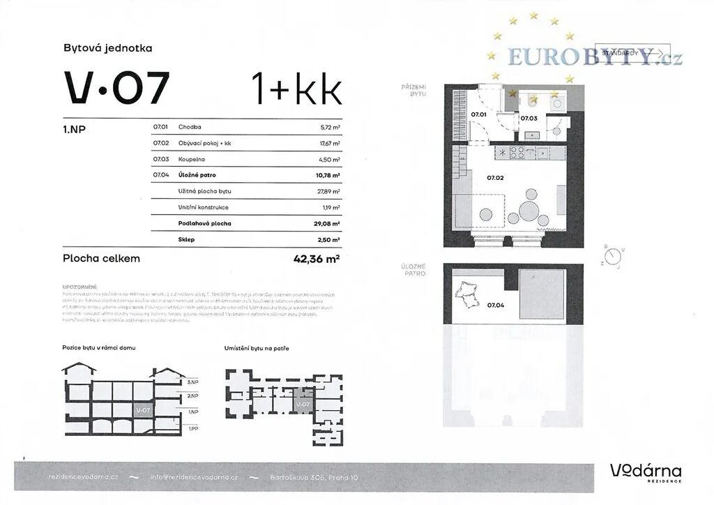 Dovolujeme si Vám s výhradním zastoupením vlastníka nabídnout k pronájmu luxusně zařízený byt o velikosti 1+kk s mezonetovým patrem ( sloužit může jako úložný prostor a ložnice ), v jedinečné rezidenci Vodárna na rozhraní Nuslí a Vršovic v ulici Bartoškova 3. Pouze 1ř bytů. Umístění bytu je v historické památkově chráněné budově nedaleko Vršovického nádraží, která prošla totální renovací a výstavbou nových 16 ti bytů z nichž tento se nachází v prvním patře ze 2 s jihozápadní orientací do Bartoškovy ulice mezi krásné vzrostlé stromy. Byt je ve vysokém standardu vč. zařízení bytu jako je vybavená kuchyně, úložné prostory a vestavěná skříň atd. Každý detail všech bytových jednotek v rezidencevodarnacz byl pečlivě promyšlen s ohledem na estetiku a výjimečnost tohoto unikátního objektu s cílem vytvořit útulné a příjemné prostředí, které bude odrážet Vaši osobnost a styl. K bytu patří i velký sklep v přízemí domu. Lokalita je velice klidnou s veškerou potřebnou infrastrukturou v místě v dochozí vzdálenosti. Vlak 6 min na Hlavní nádraží a ve výstavbě i metro. V domě není možné chova zvířata. V rezidenci zatím můžeme nabídnout podobné další 2 bytové jednotky v druhém patře v cenové hladině mezi 29tis + poplatky vč. všech energií 6 tis.Kč/jednotka. Vratná kauce vždy ve výši jednoho nájmu s poplatky. RK výhodně odměna RK pouze 1/2 nájmu s poplatky + DPH.