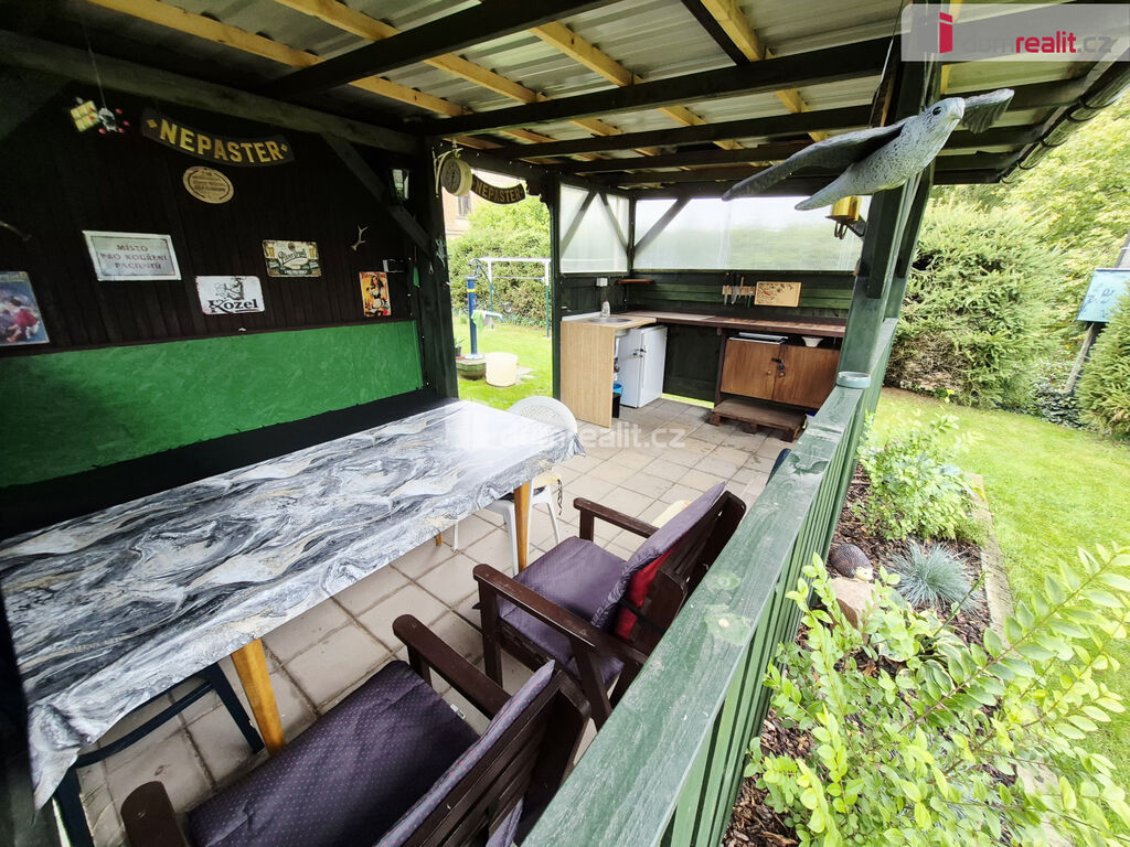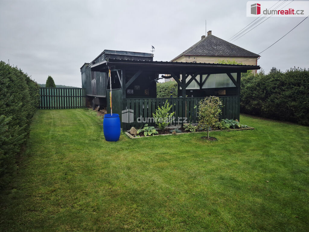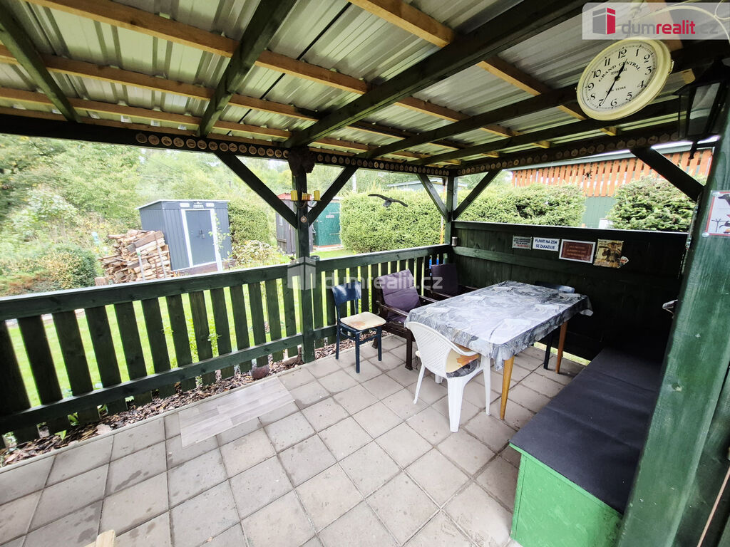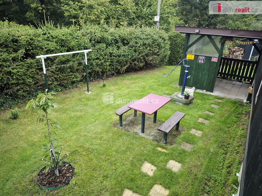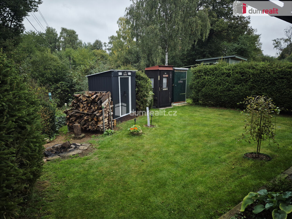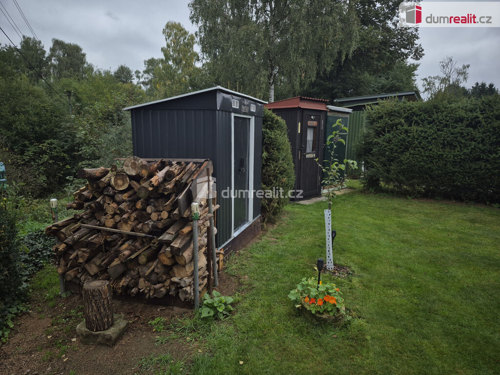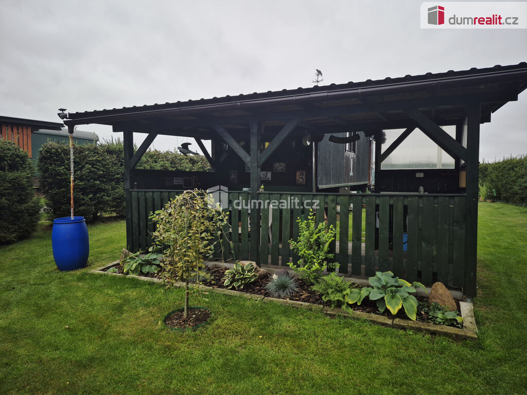 Pozemek je vedený jako zahrada o rozloze 440 m² ohraničený jehličnany, a to jedlí a smrkem. Zahrádka má pěkný udržovaný travnatý porost a několik malých okrasných míst. Je zde kromě mobilní maringotky i zastřešená pergola o velikosti 15 m², kde je i letní kuchyně se zavedenou elektřinou, suché WC a bouda na soukromé umývání.