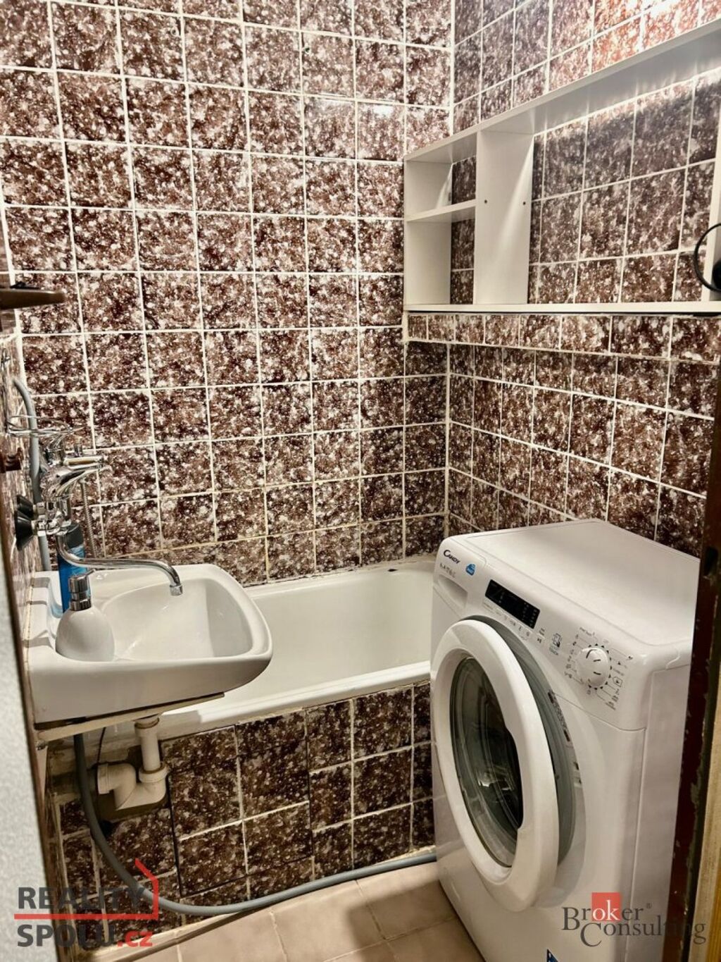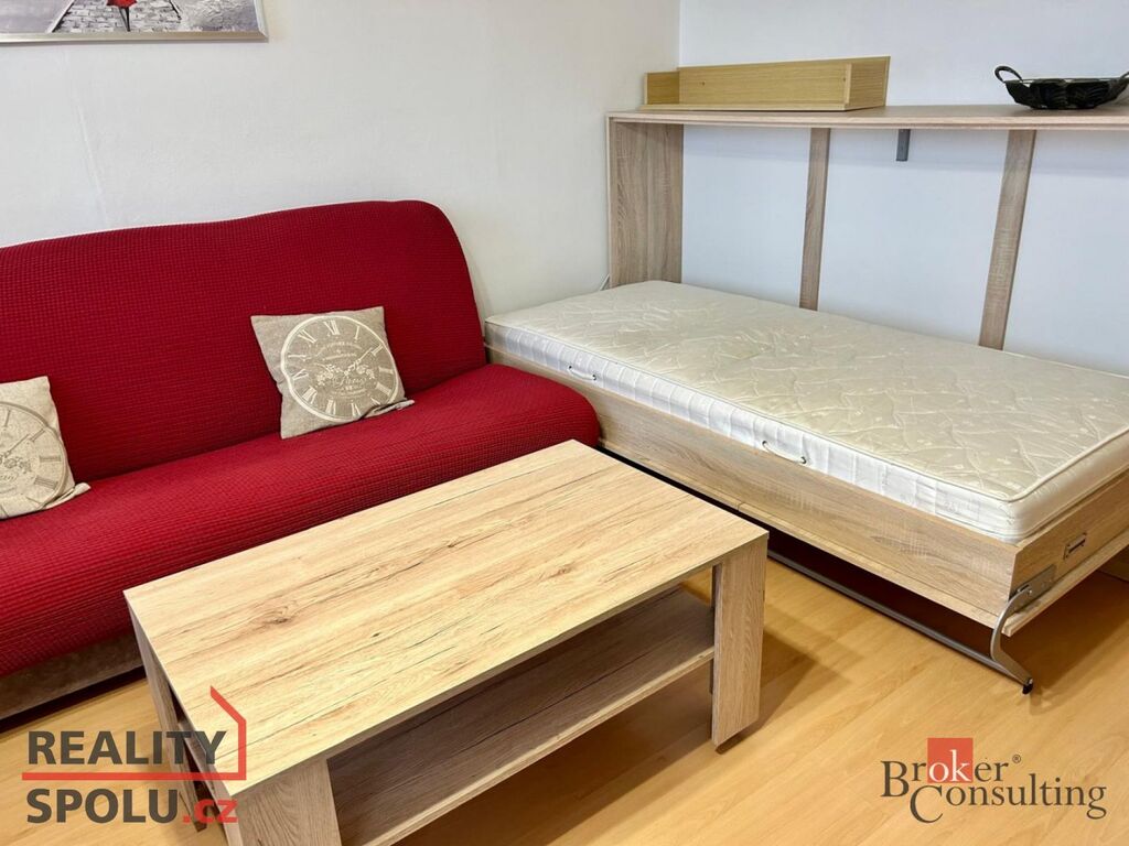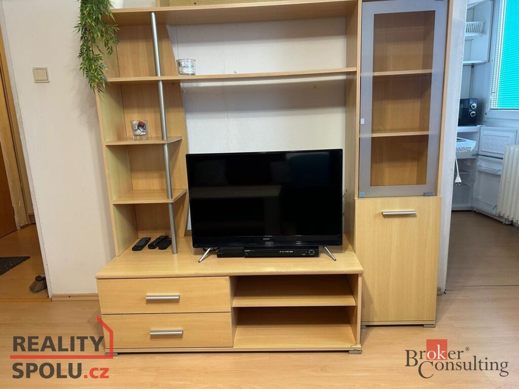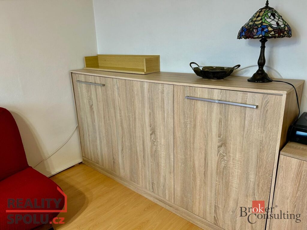 Byt se skládá z předsíně s vestavěnou skříní, koupelny se záchodem, vanou a pračkou a obývacího pokoje, kde je vestavěná postel, gauč, křeslo, jídelní stůl a televize, takže vše potřebné máte hned po ruce. Kuchyň je plně vybavená – trouba, mikrovlnka, lednice s mrazákem, takže můžete okamžitě začít vařit. V bytě je vše potřebné pro pohodlné a okamžité nastěhování. Současné vybavení lze ponechat nebo podle dohody odstranit. Na chodbě je praktický kumbál pro úschovu věcí.
