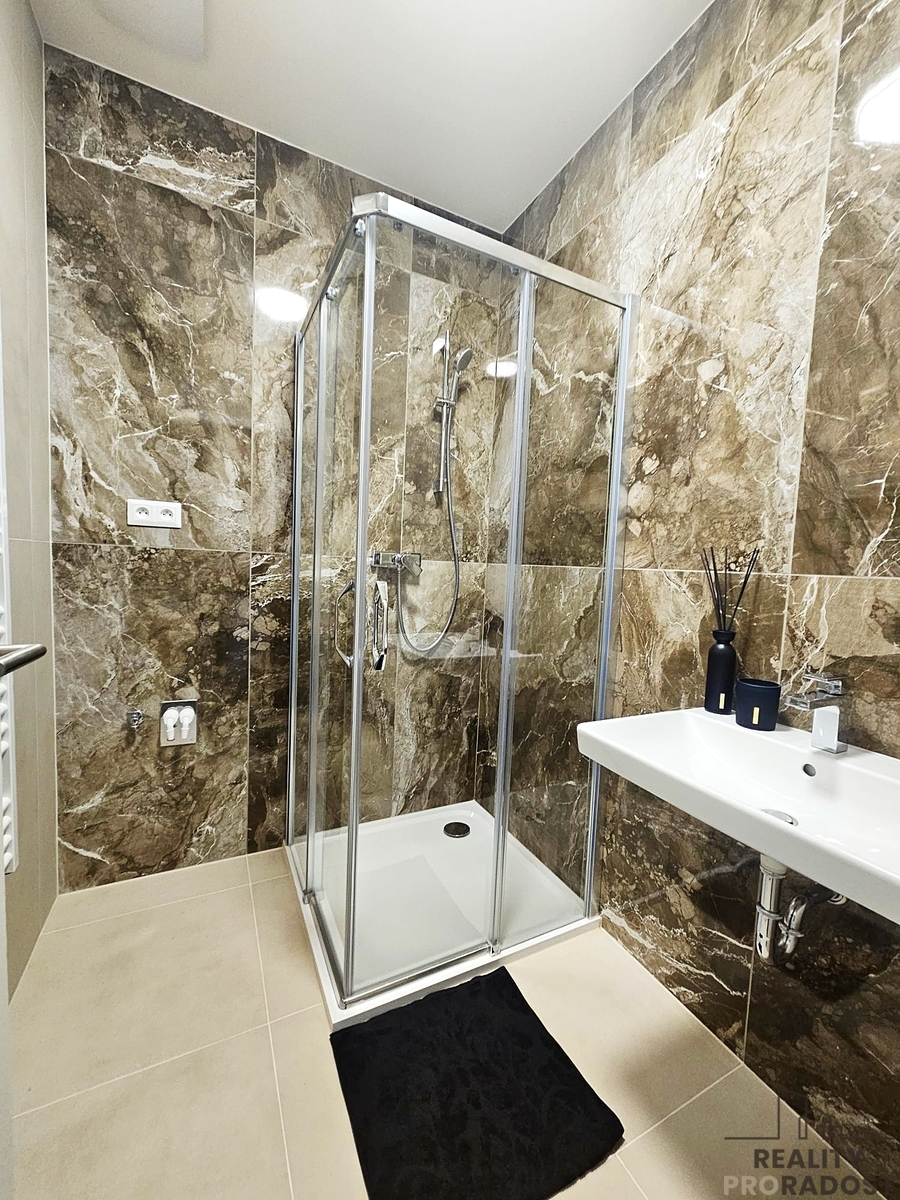 V koupelně se sprchovým koutem bude doplněno zrcadlo s osvětlením.