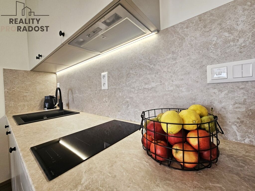 Nabízíme k pronájmu částečně zařízenou novostavbu bytu 1+kk s terasou v polyfunkčním komplexu Allrisk MERIDIEM v Brně Komárově na ul. Komárovská, který je součástí nově vznikající městské čtvrti Trnitá.