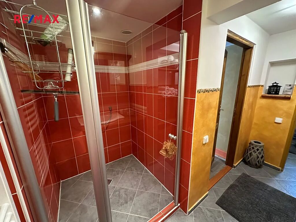 • koupelna s velkým zděným sprchovým koutem, umyvadlem a přípojkou na pračku