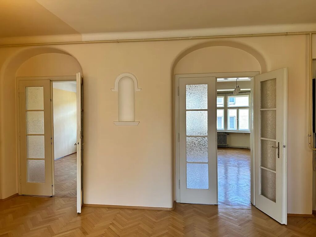 Atraktivní byt se zachovalými původními prvky zaujímající celé jedno podlaží staršího činžovního domu v centru městské části Děčín I Děčín, je novinkou v nabídce naší kanceláře. Velkorysé dispoziční řešení a celkových 124 m2 podlahové plochy bytu (+ 16 m2 sklep) byt předurčuje zájemcům, kteří preferují nadstandartní životní prostor. Byt je umístěn ve IV. NP domu bez výtahu. V domě je celkem 6 bytových jednotek. Vlastníci domu mají k dispozici společnou udržovanou zahradu ve vnitrobloku a rozsáhlé, k bytovým jednotkám vymezené, sklepní a půdní prostory. Jde o bydlení na tak zvané "dobré adrese" se stoprocentní zárukou klidného, spořádaného a bezproblémového bydlení v samém centru města.