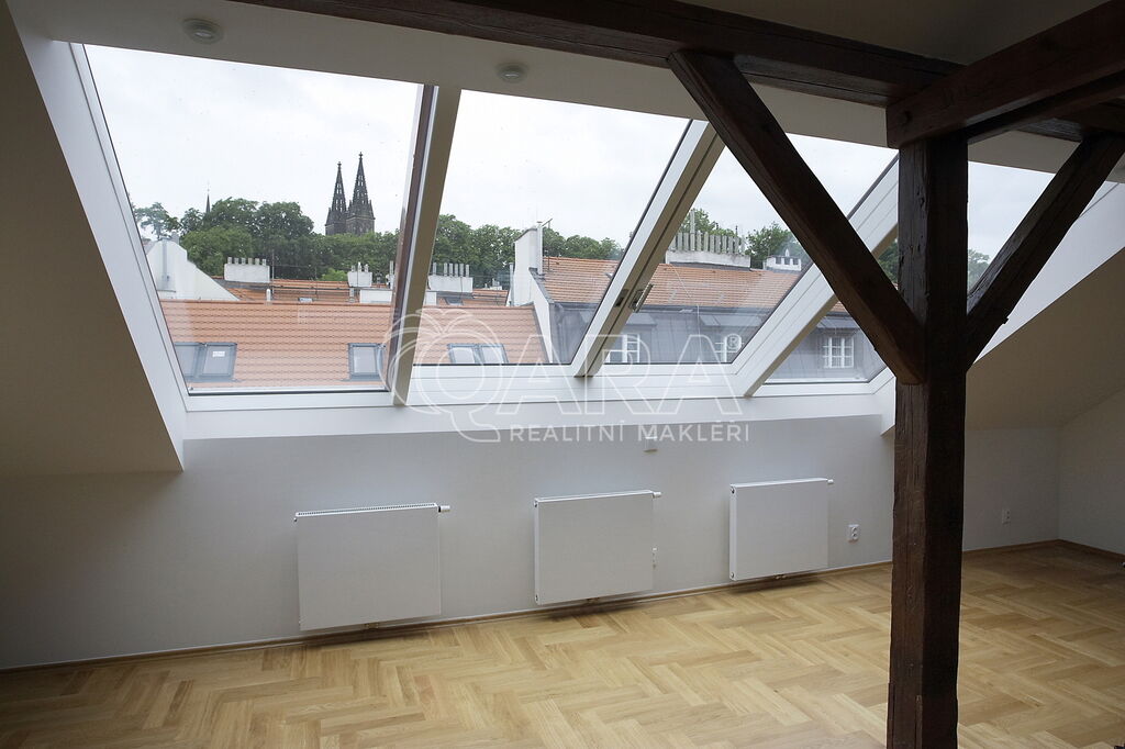 Nabízíme k pronájmu velice příjemné a zařízené 3+kk (88 m²) se střešní terasou (9 m²) ve 4. patře vkusně a kompletně zrekonstruovaného činžovního domu s výtahem nedaleko centra v městské části Praha 2.