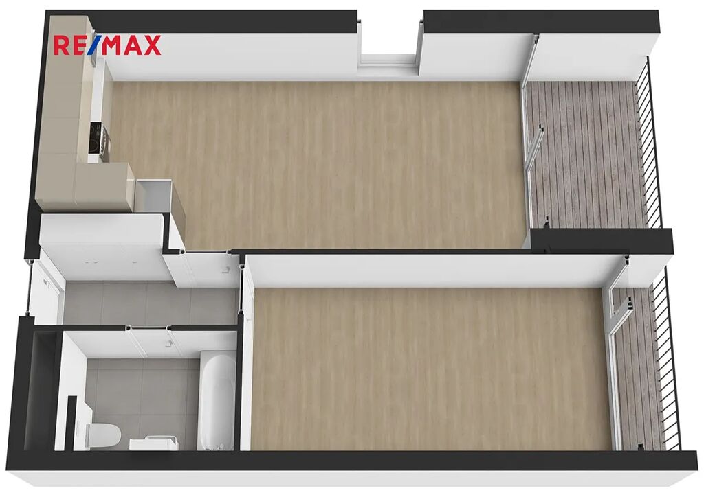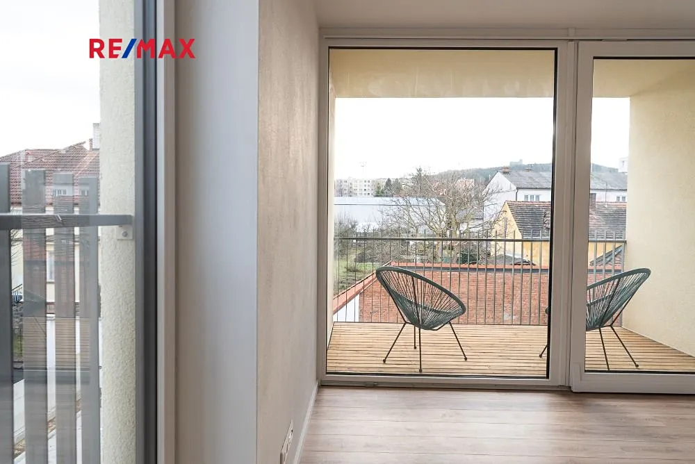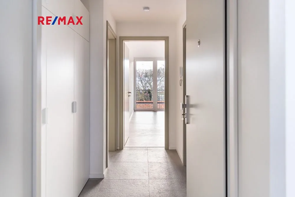 Pokoje jsou vzájemně neprůchozí a je z nich vstup na balkony s orientací do vnitrobloku domu na slunnou jižní stranu a s výhledem na Radyni. V koupelně je vana a toaleta, v chodbě bytu nabízí úložný prostor vestavěná šatní skříň. Byt má podlahové vytápění, v suterénu domu je plynový kondenzační kotel, instalovány jsou měřiče tepla pro jednotlivé byty. K bytu náleží komora ( výměra cca 2,1 m2) ve stejném podlaží a v ceně nájmu je parkovací stání u domu.