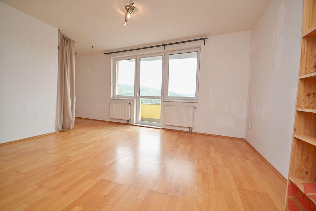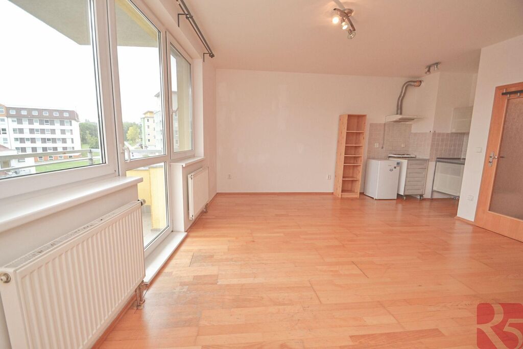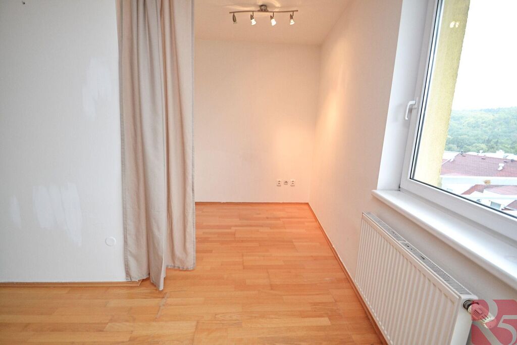 V pokoji dřevěná podlaha a výklenek s možností pracovny nebo odděleného spaní.