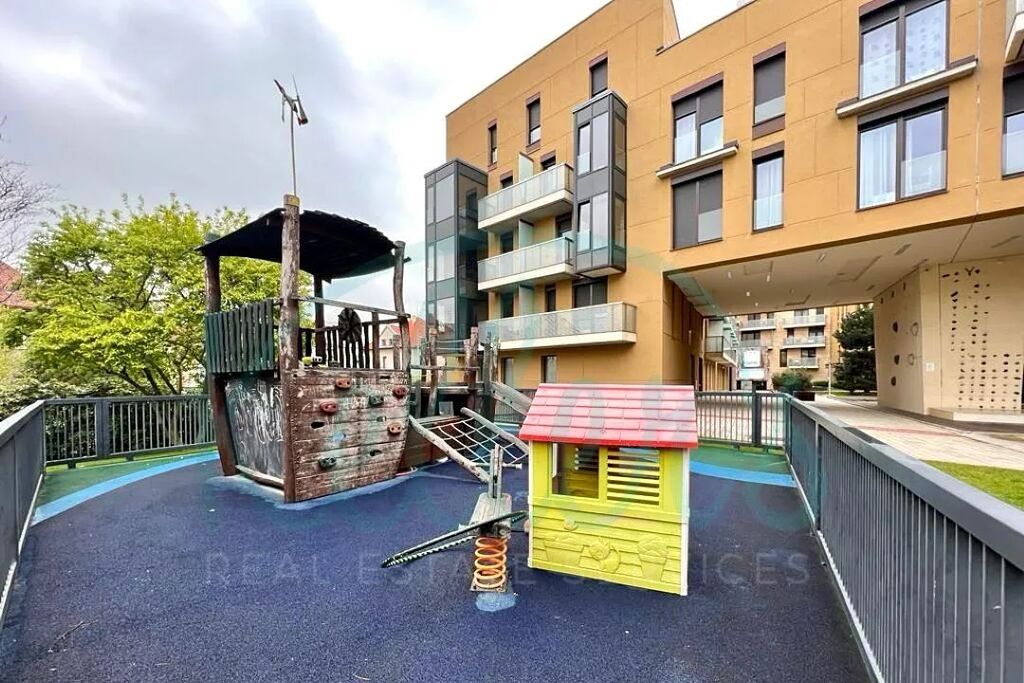 Byt se nachází v klidném prostředí s krásným výhledem do parku. Prostorný obývací pokoj je propojený s kuchyňským koutem vybaveným moderními spotřebiči: mikrovlnná trouba, digestoř, elektrická trouba, sklokeramická varná deska a myčka nádobí. Obývací část zahrnuje rozkládací sedačku, jídelní stůl se 4 židlemi, a poskytuje příjemné prostředí pro relaxaci a společné chvíle.